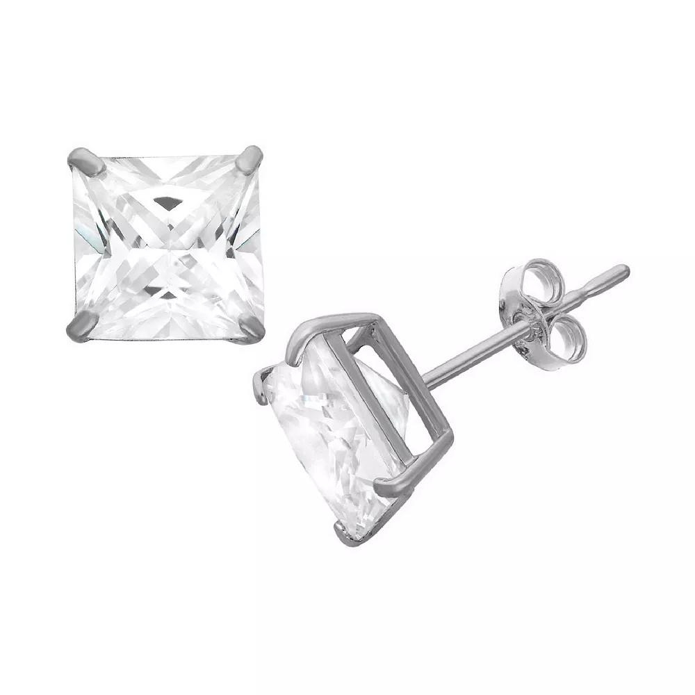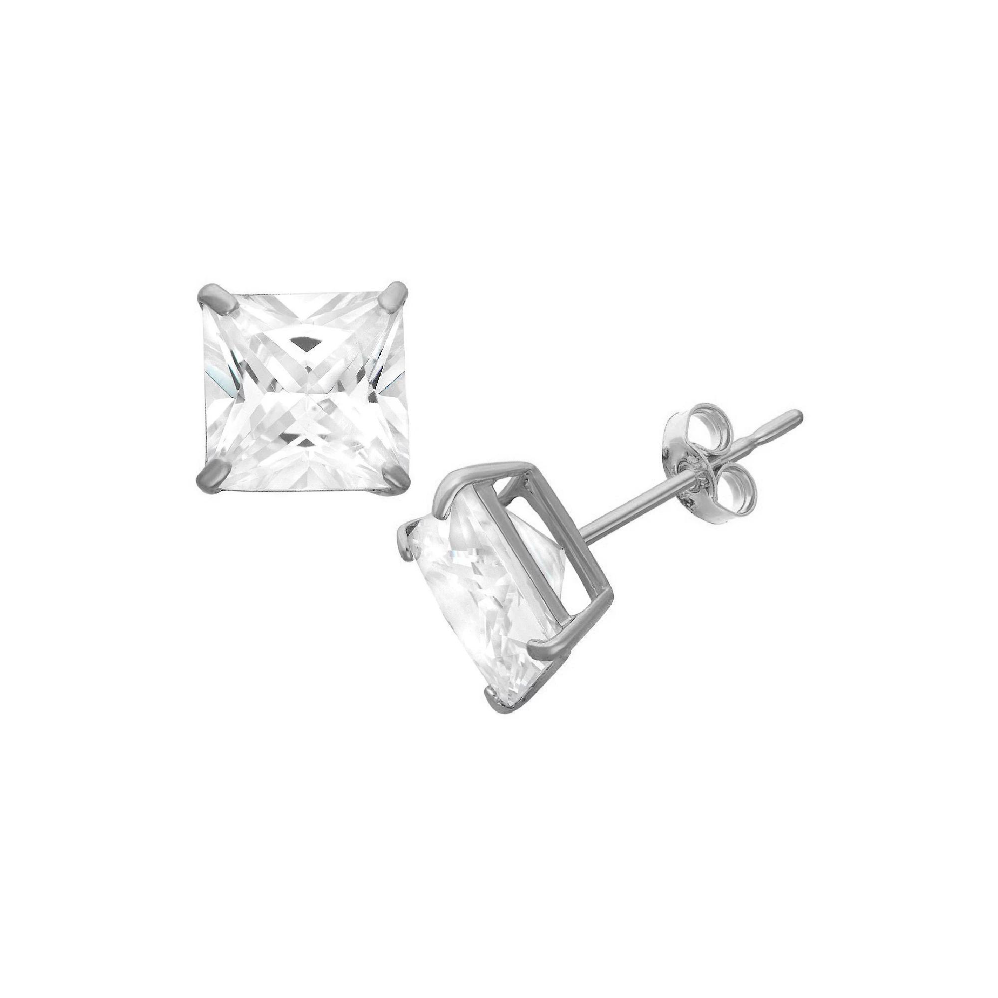 Add timeless style to your look with these cubic zirconia square stud earrings. EARRING DETAILS Length: 8 mm Backings: push-on screw-off Metal: sterling silver Additional details: CZ stones Gemstones may have been treated to enhance their appearance. Special care may be required. Size: One Size. Color: White. Gender: male. Age Group: adult.