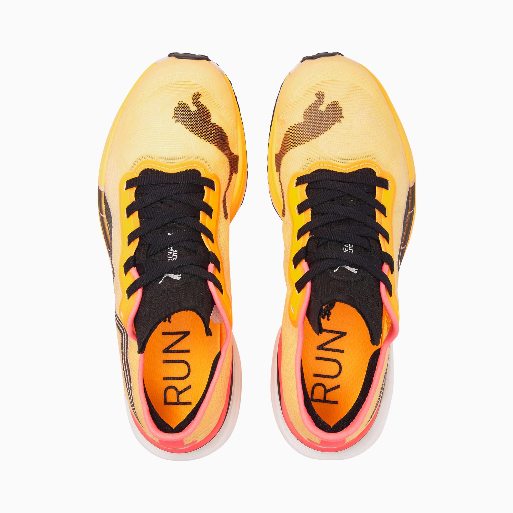 descriptionCalling all PR-chasers. Set a new personal best at your next marathon in the Deviate NITRO Elite 2 racing shoes. Pinnacle responsiveness, propulsion, and cushioning in an extremely lightweight package (60g lighter than our previous Deviate model), this shoe exceeds the demands of runners chasing a best time in competitions. We’ve accomplished this through a thinner rubber, an even lighter nitrogen-injected NITRO Elite foam midsole, a leaner and stronger, thermo-formed carbon fiber plate, and a filmy upper that maximizes both breathability and lockdown. Now, take your mark.Style: 378948_01Color: Sun Stream-Sunset Glowfeatures & benefitsdetailsmaterials & care
