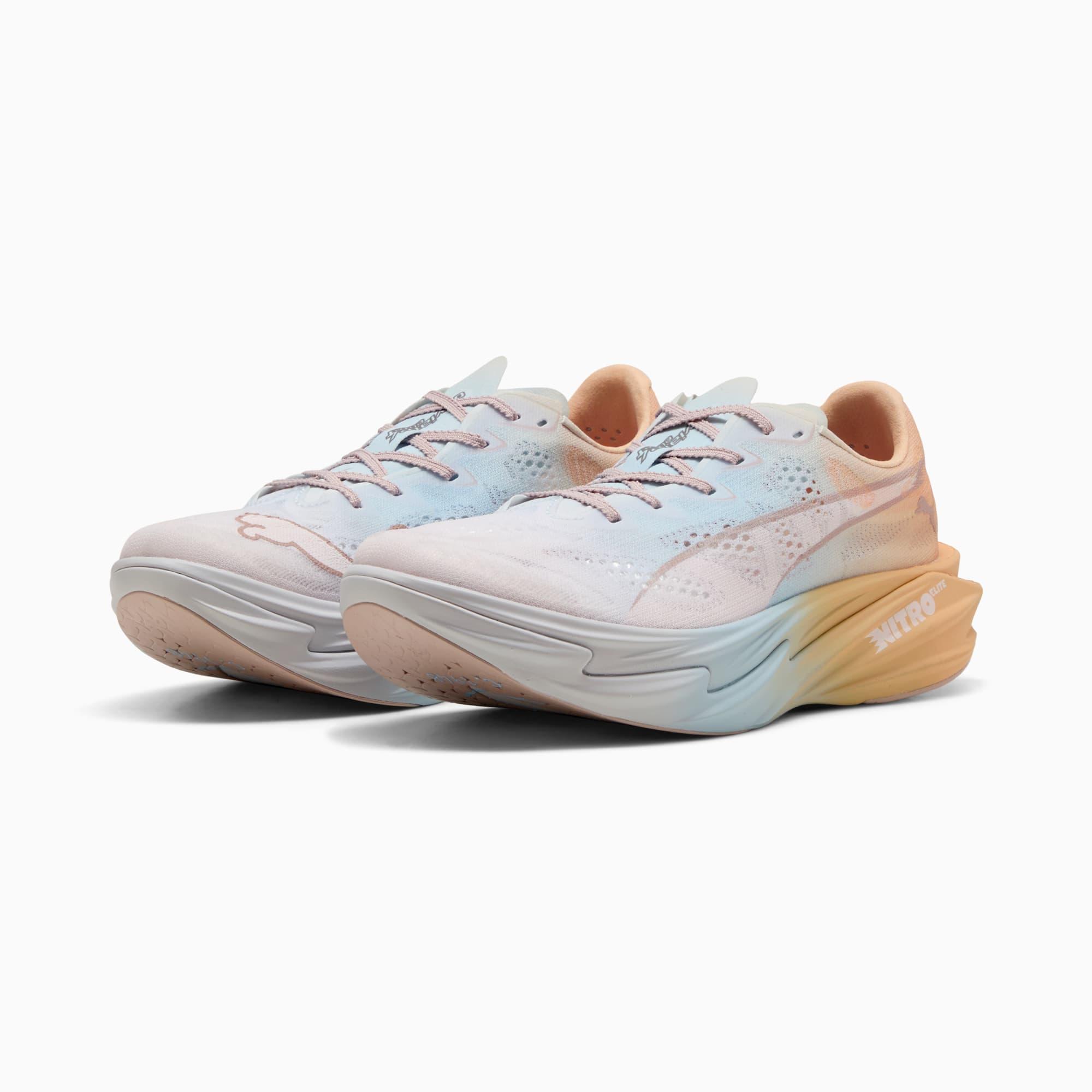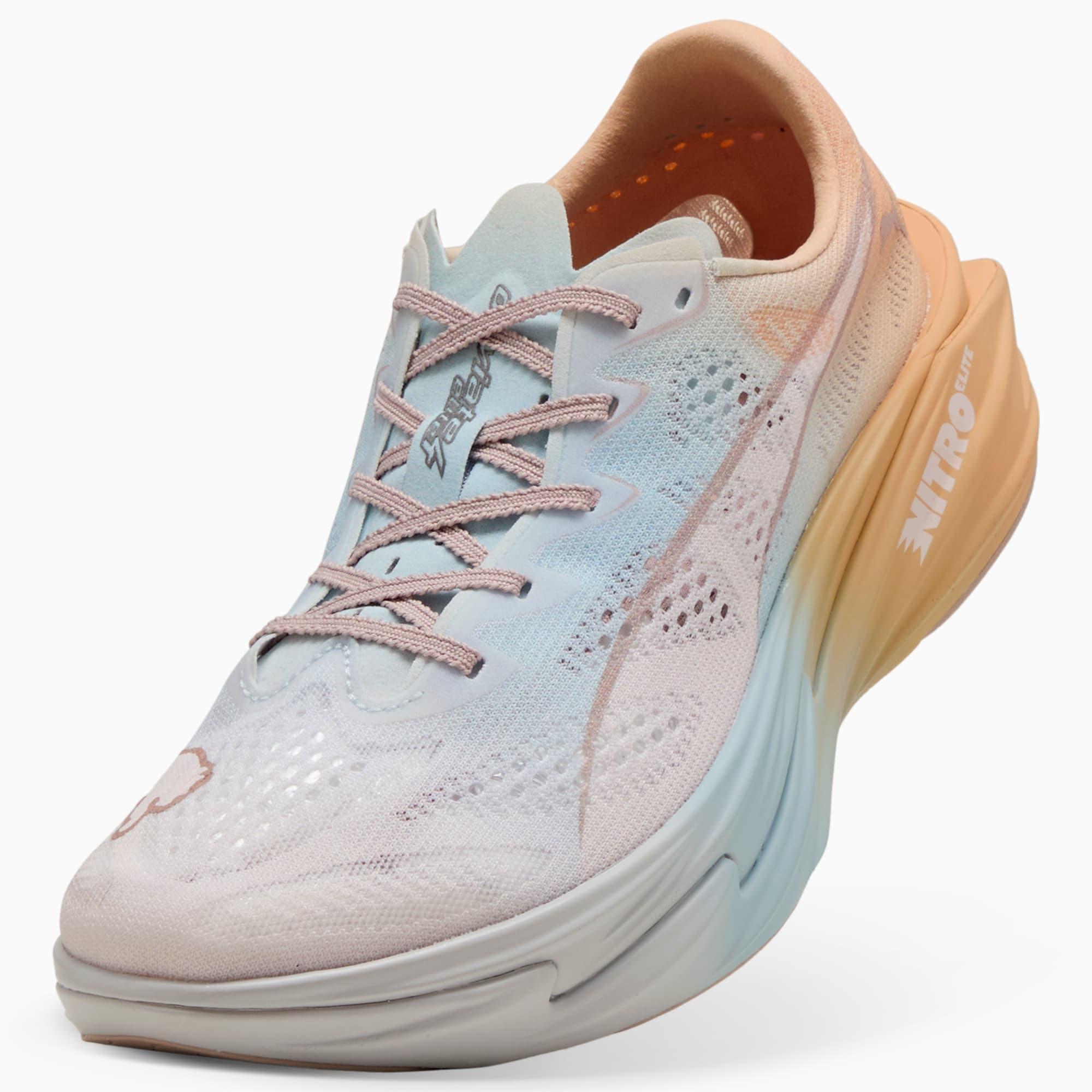descriptionWhen fast isn’t fast enough, you go beyond. The Deviate NITRO™ Elite 4 is built for race day – those moments when every second counts. Upgraded NITROFOAM™ ELITE delivers elite responsiveness for unbeatable speed, while a reengineered PWRPLATE channels every ounce of energy forward. 12% lighter than its predecessor, Deviate Elite 4 will keep you light, fast, and locked on your goal pace. Every detail is engineered to take you beyond fast.Style: 312908_01Color: Jasmine Flower-Lucite-Almost Apricotfeatures & benefitsNITROFOAM™ Elite: Premium performance foam technology that provides pinnacle responsiveness in an extremely lightweight packagePWRPLATE: Carbon fiber plate engineered to maximize energy transfer and delvier a propulsive ridePUMAGRIP: Durable performance rubber compound designed for all-surface tractiondetailsWidth: RegularToe type: RoundedClosure: LacesStack height: 40mm/32mmHeel type: FlatWeight: 170g (size UK8)Cushioning: MaxHeel-to-toe drop: 8mmPronation: NeutralULTRAWEAVE for an ultra-lightweight feelmaterials & careMaterial informationMidsole: 100% SyntheticSockliner: 100% TextileOutsole: 98% Synthetic, 2% RubberUpper: 83% Textile, 17% SyntheticLining: 100% Textile