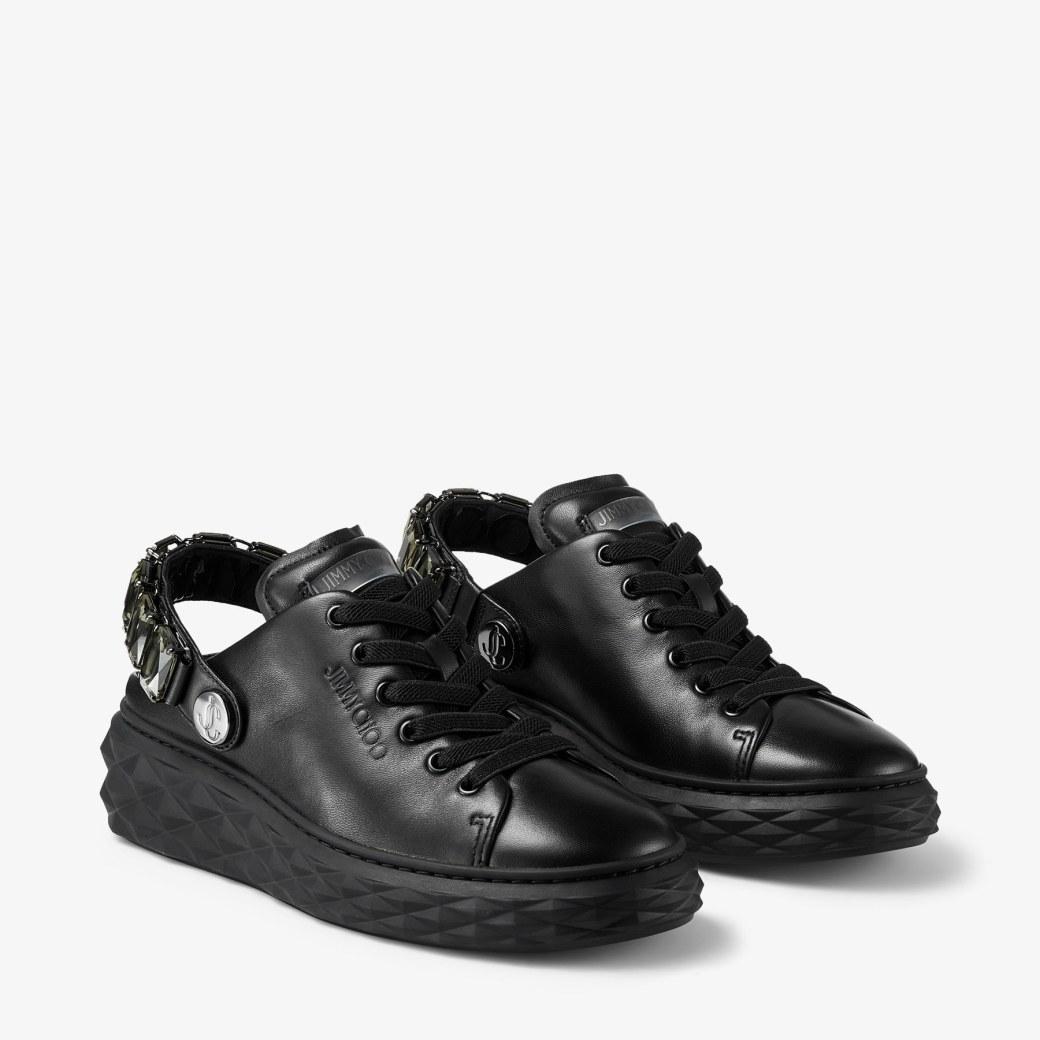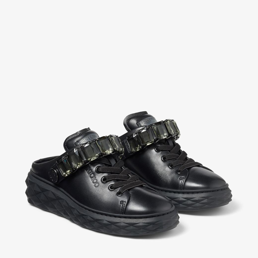 Black Nappa Leather Slipper Trainers with Crystal Strap