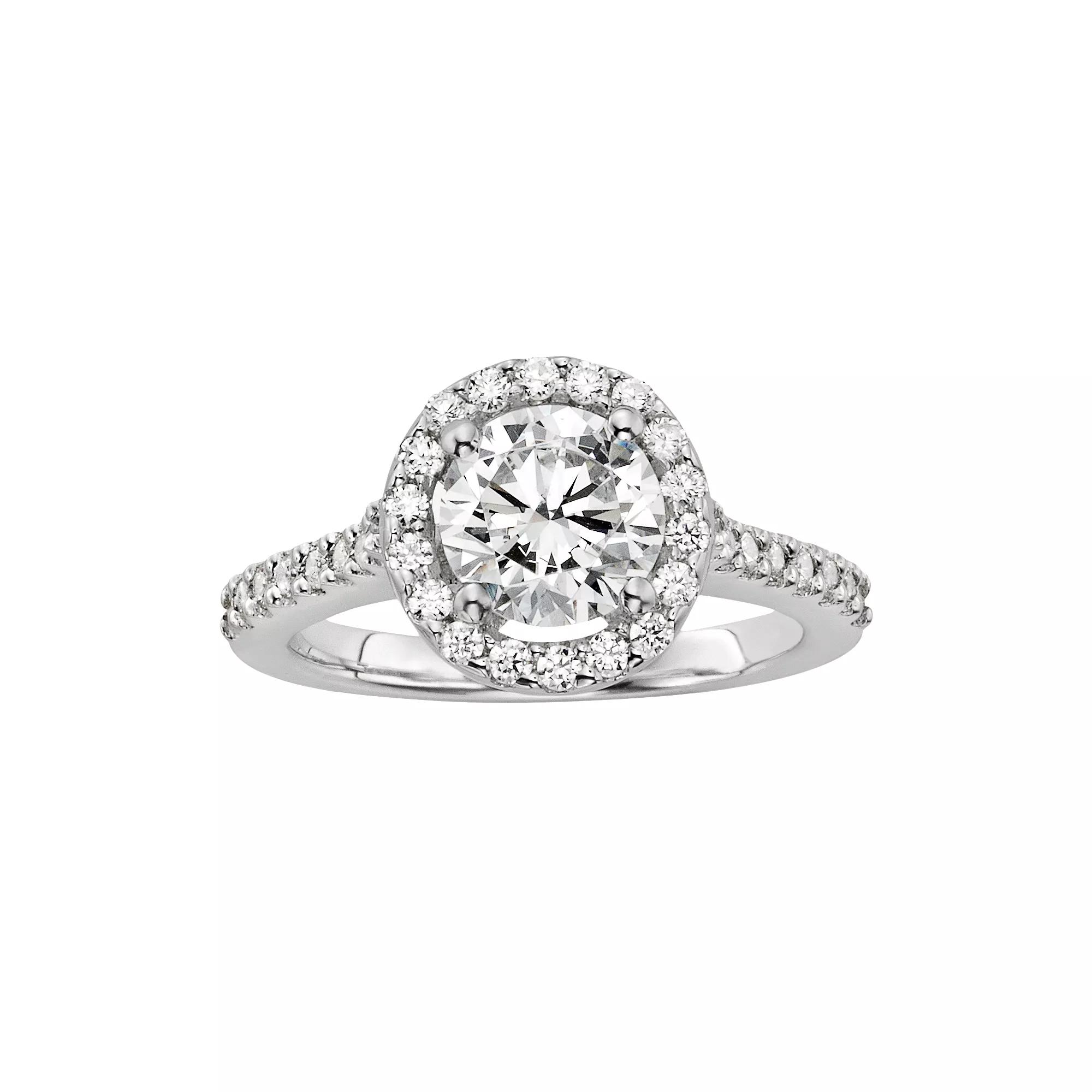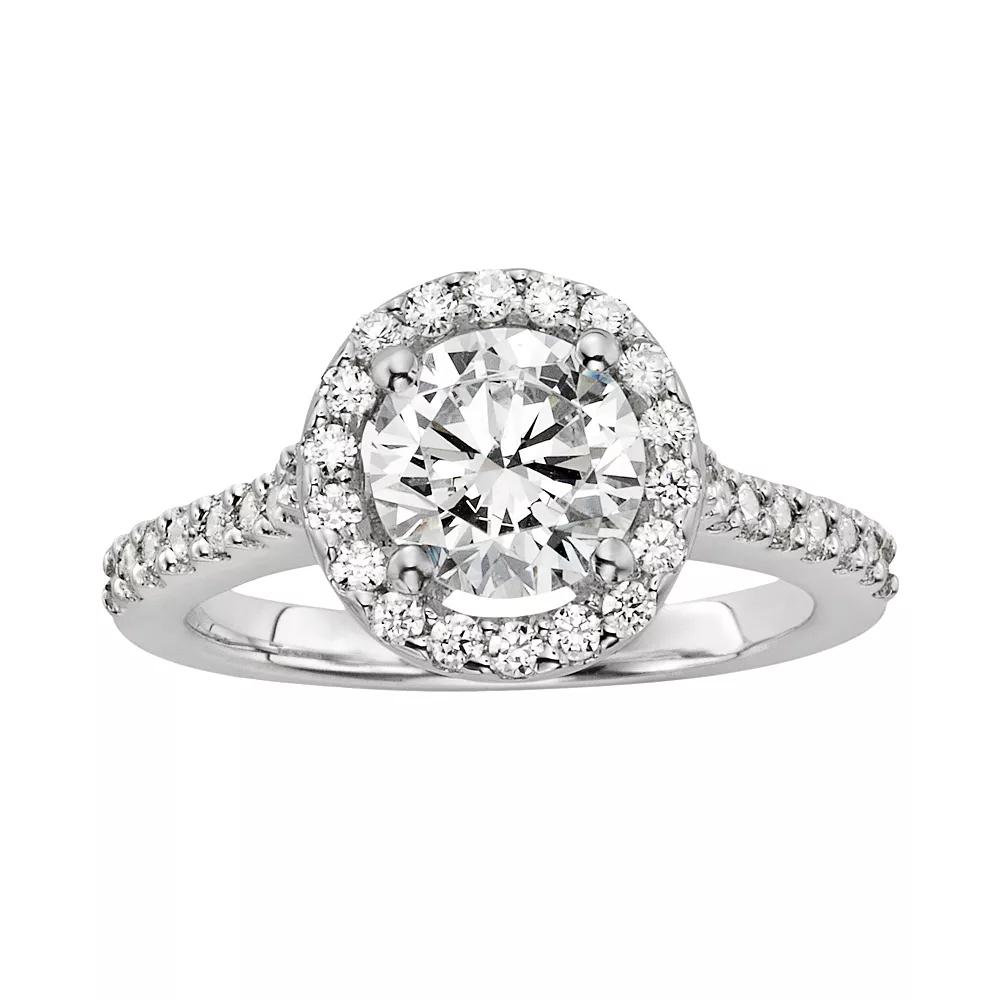 Ring Details: Width: 9.5 mm Metal: rhodium-plated sterling silver Diamonore Details: Total weight diamond equivalent: 2 ct. Cut: round Setting: prong Diamond equivalent carat (ct.) Total Weight (T.W.) represents the approximate total weight of diamonds of equivalent appearance. Size: 7. Color: White. Gender: female. Age Group: adult.