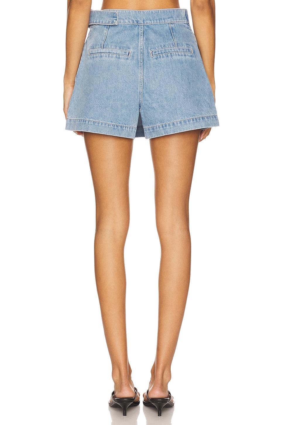 100% cotton. Machine wash. Zip fly with button closure. Wrap styling with buckle closure. Side slit pockets. Back seam pockets. Denim fabric. Skort measures approx 13.5" in length. Made in China. Revolve Style No. VBRD-WF61. Manufacturer Style No. J25051681284VW.
