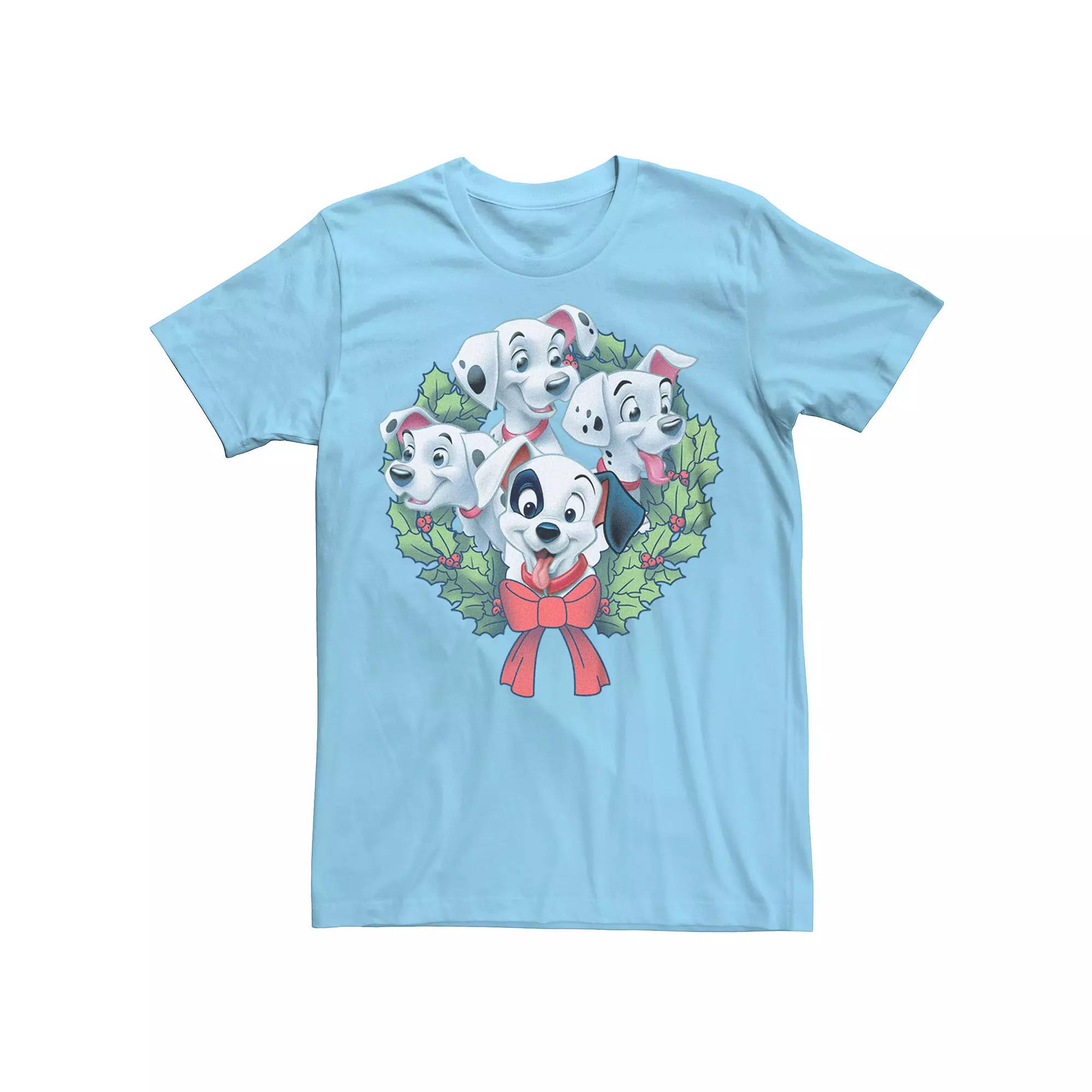 Disney's 101 Dalmatians Men's Puppies Christmas Wreath Tee,