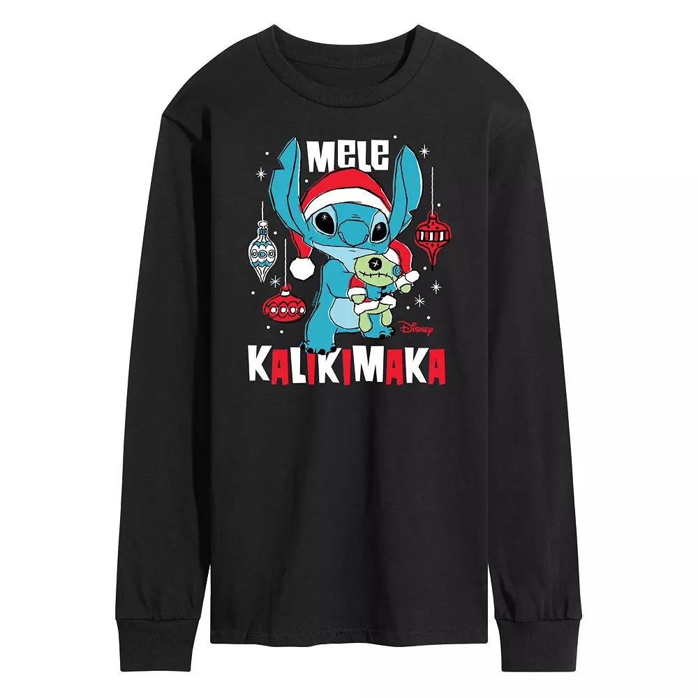 Add a hint of magical holiday spirit to any wardrobe with this Disneys Lilo & Stitch Mele Kalikmaka Tee. FEATURES Crewneck Long sleeveFABRIC & CARE Cotton, polyester Imported Machine wash Color: Navy. Gender: male. Age Group: adult. Pattern: Graphic.