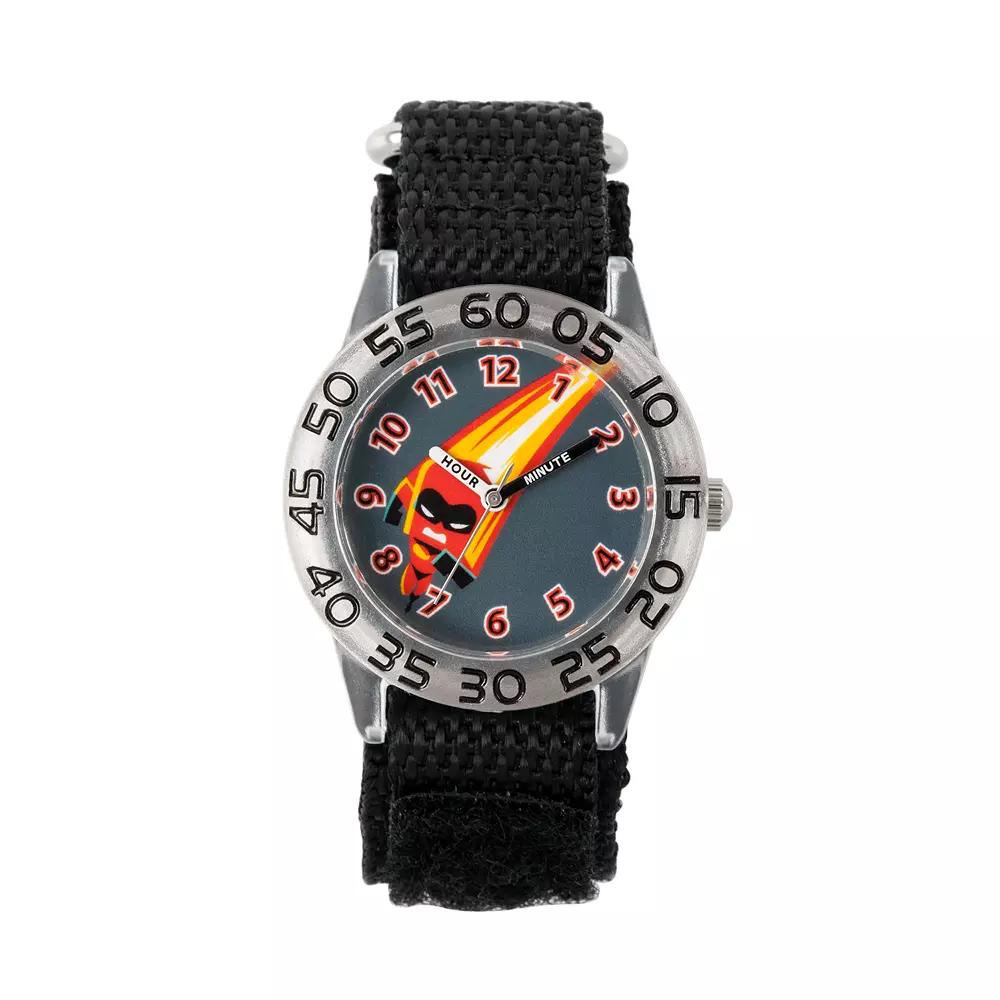 This Incredibles 2 time teacher watch from Disney features clearly labeled "Hour" and "Minute" hands to help your little superhero learn how to tell time. DisneyDISPLAY Dial color: gray with The Incredibles 2 design Face cover material: mineral crystal CASE Material: silver-tone plastic with stainless steel back Diameter: 44 mm BAND Material: black nylon Clasp: double D-ring with hook & loop Circumference: adjusts from 210 mm to 220 mm Width: 22 mm DETAILS Movement: quartz Power: battery Water resistance: 30 meters Packaging: boxed Warranty: manufacturer's 1-year limited For warranty information please click here Size: Medium. Gender: male. Age Group: adult. Material: Leather Strap.