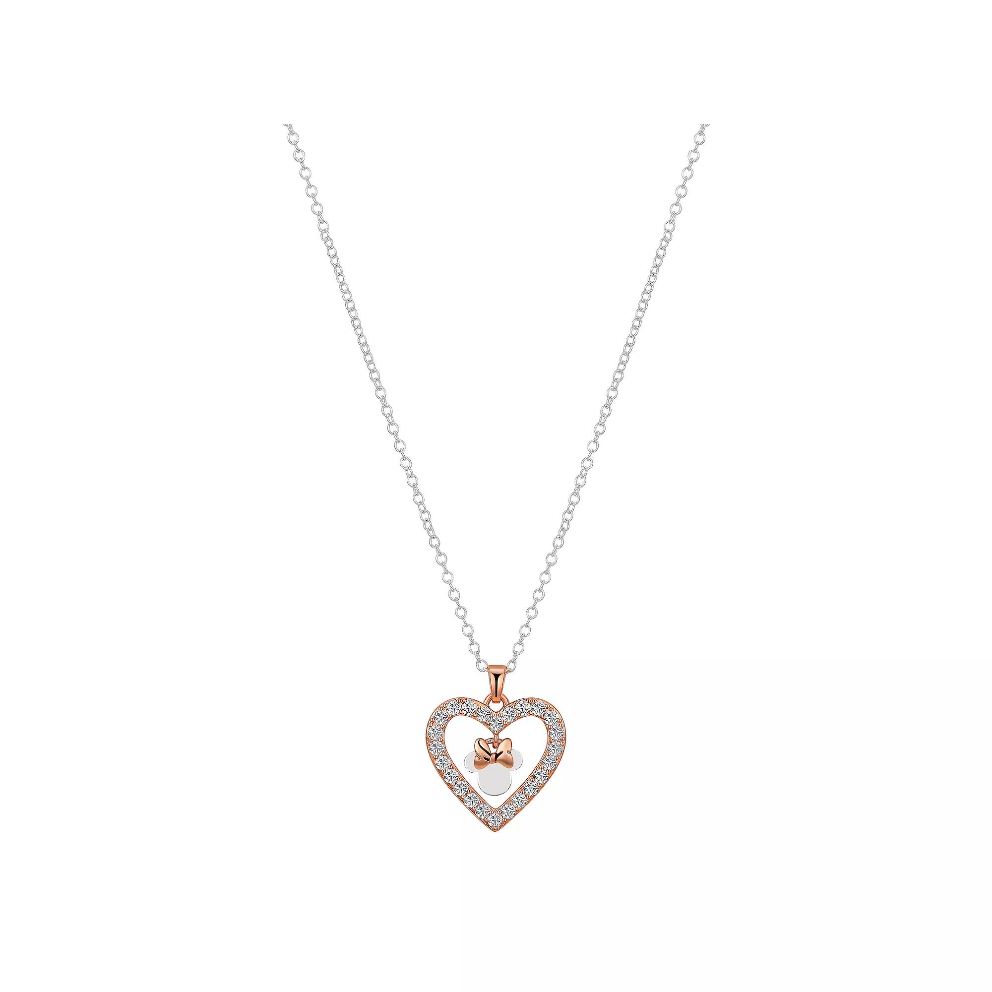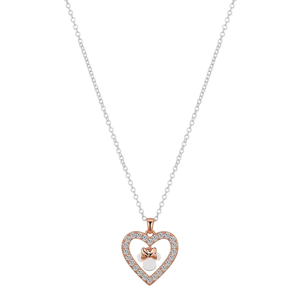 Disney's Minnie Mouse Two-Tone Cubic Zirconia Open Heart Pendant Necklace, Women's, Size: 18", Two Tone