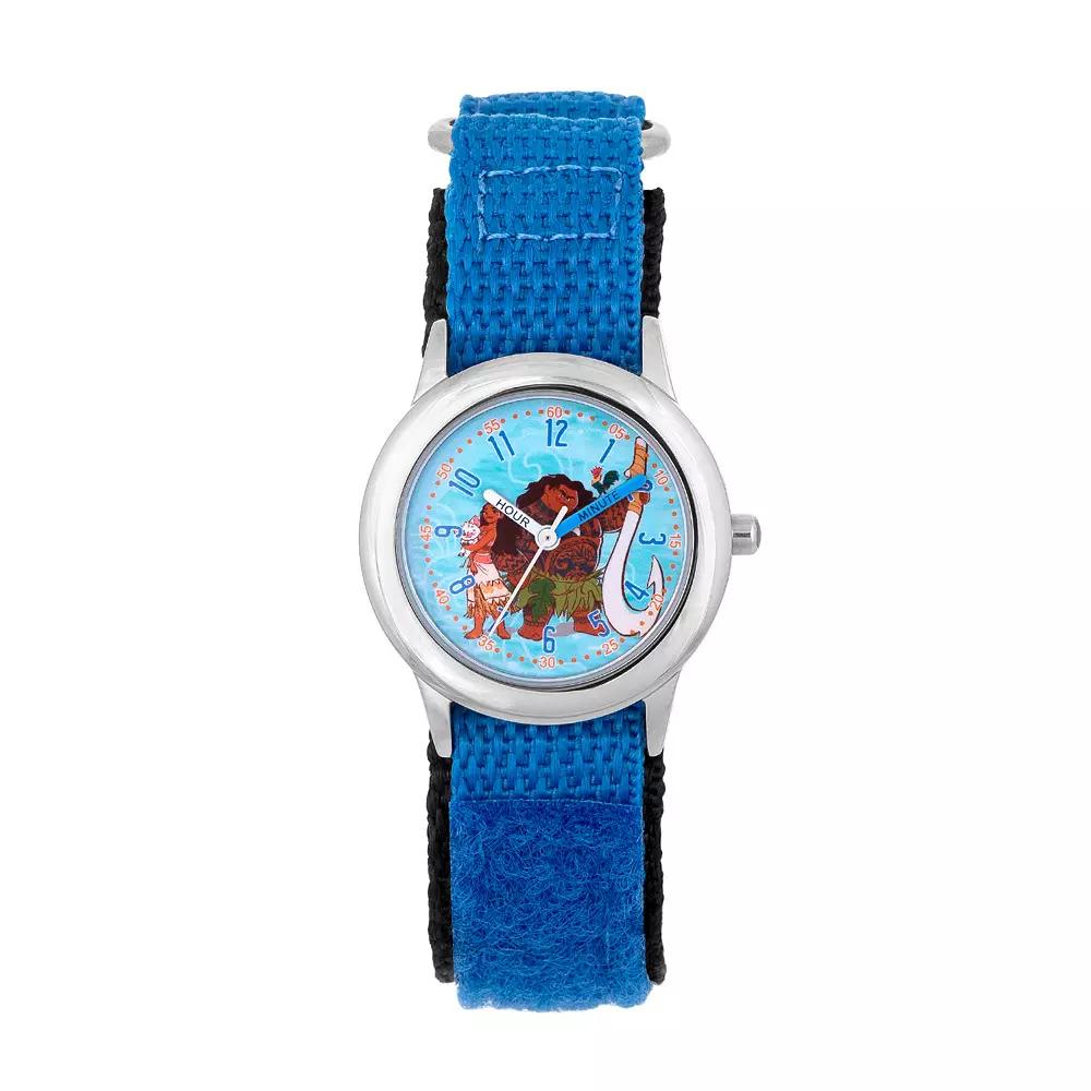 Your little Moana fan will love learning how to tell time with this kids Disney time teacher watch featuring Moana, Pua, Heihei and Maui. DisneyDISPLAY Dial color: blue with Moana, Pua, Heihei & Maui graphics Face cover material: mineral crystal CASE Material: stainless steel Diameter: 32 mm BAND Material: blue & black nylon Clasp: D-ring with hook & loop Circumference: 190 mm Width: 16 mm DETAILS Movement: quartz Power: battery Water resistance: 30 meters Packaging: boxed Warranty: manufacturers 1-year limited For warranty information please click here Size: One Size. Gender: male. Age Group: adult. Material: Fabric.