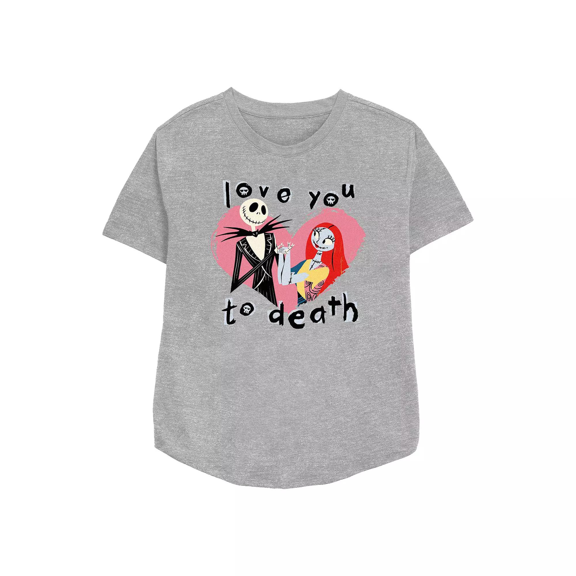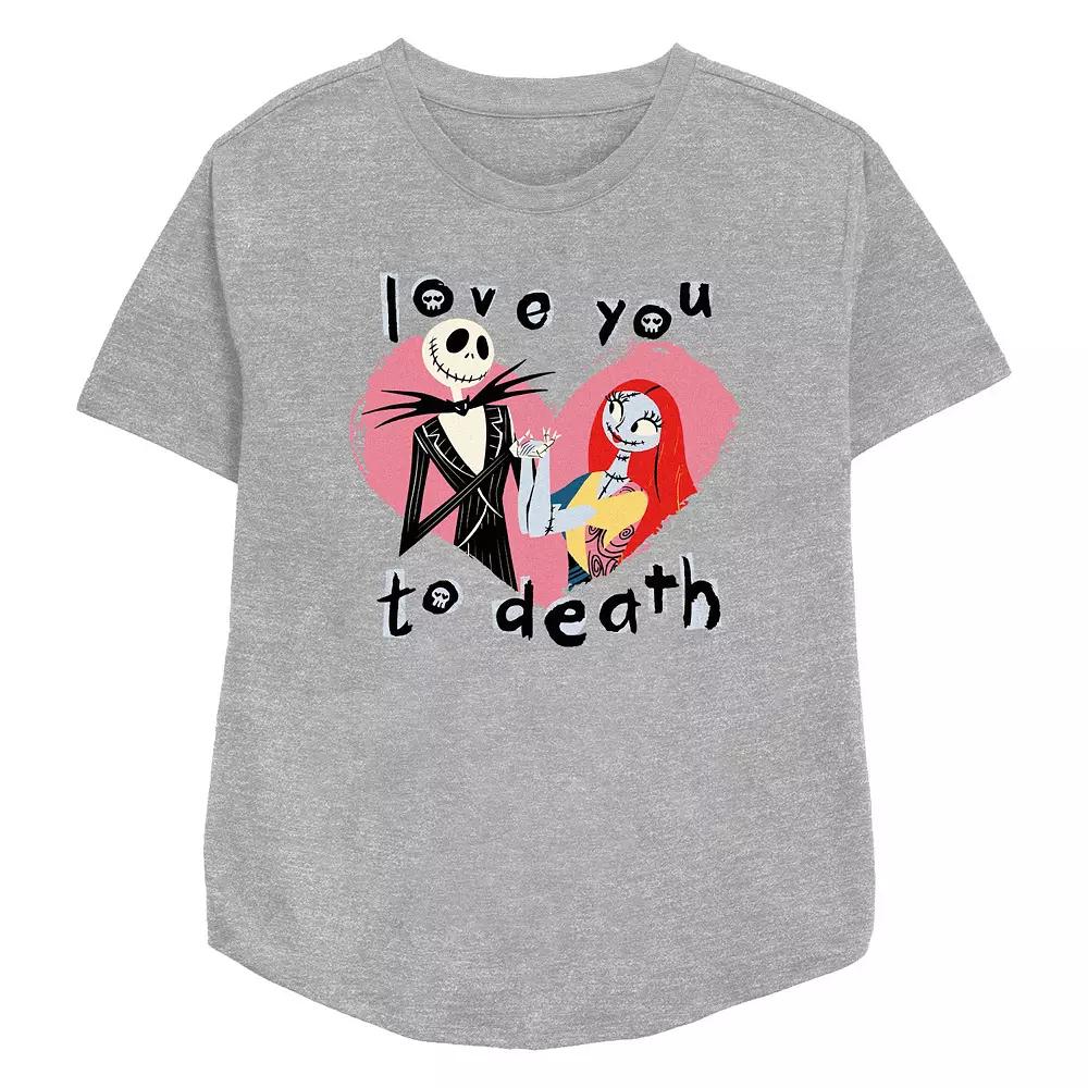 Show your love on Valentine's Day with this Disney's The Nightmare Before Christmas Jack Skellington And Sally Love You To Death Women's Relaxed Fit Graphic Tee. © DisneyFEATURES Crewneck Short sleevesFABRIC & CARE Cotton, polyester Machine wash Imported Size: Small. Color: Athletic Heather. Gender: female. Age Group: adult.
