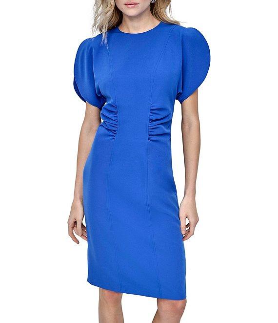 DKNY by Donna Karan Petite Size Salon Stretch Spilt Sleeve Cinched Waist Sheath Dress