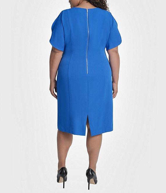 DKNY by Donna Karan Plus Size Salon Stretch Spilt Sleeve Cinched Waist Sheath Dress