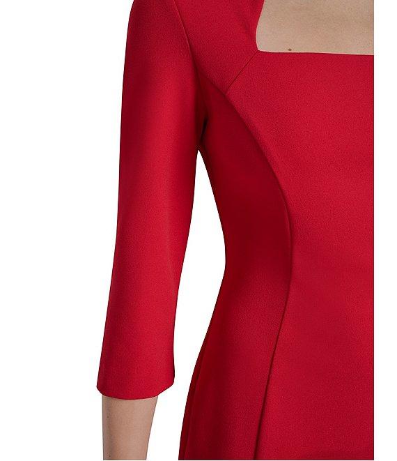 From DKNY by Donna Karan, this dress features: Scuba crepe fabrication Square neckline 3/4 sleeves High back neck Exposed zipper Above the knee Sheath silhouette Lined Center back zipper closure Approx. 36" in length Polyester/spandex Dry clean Imported.