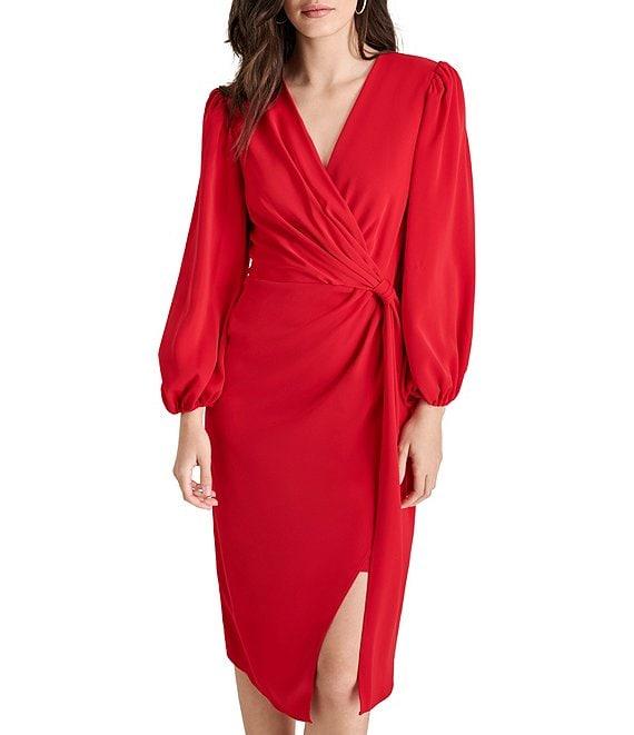 DKNY by Donna Karan Surplice V-Neck Long Balloon Sleeve Knot Front Dress