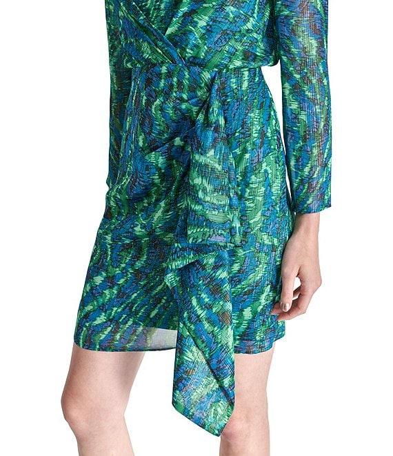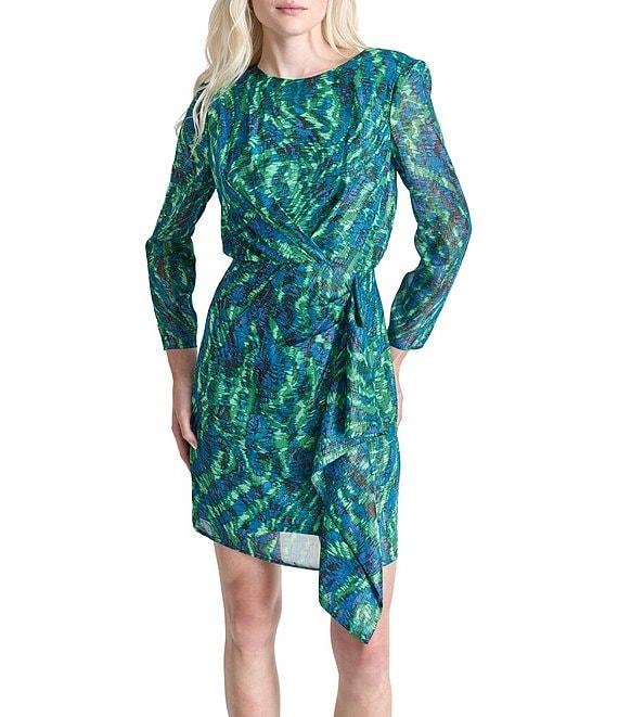 DKNY by Donna Karan Woven Crew Neck Long Sleeve Side Draped Sheath Dress
