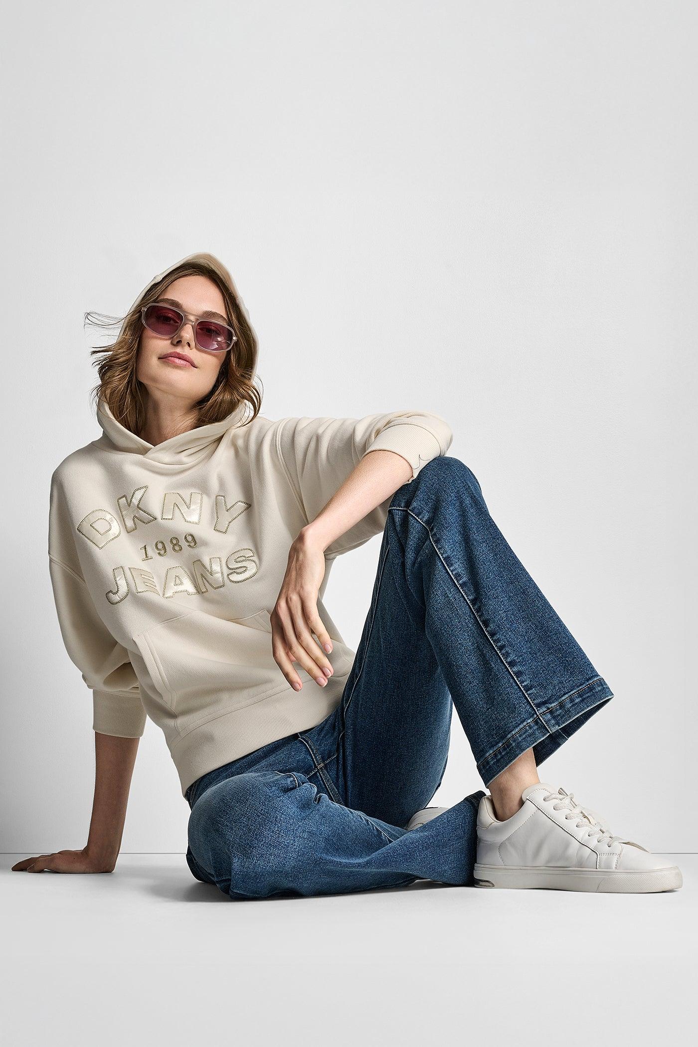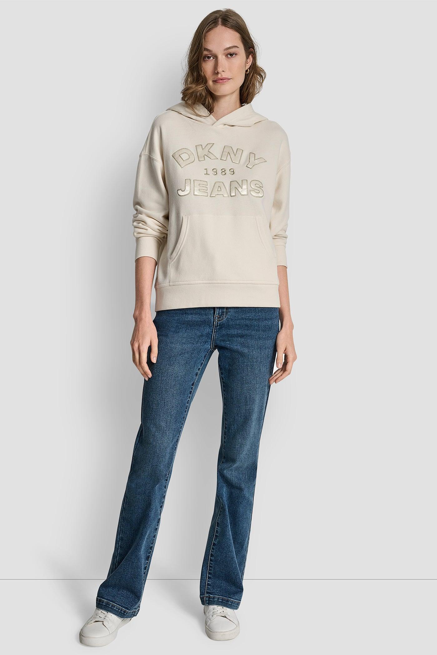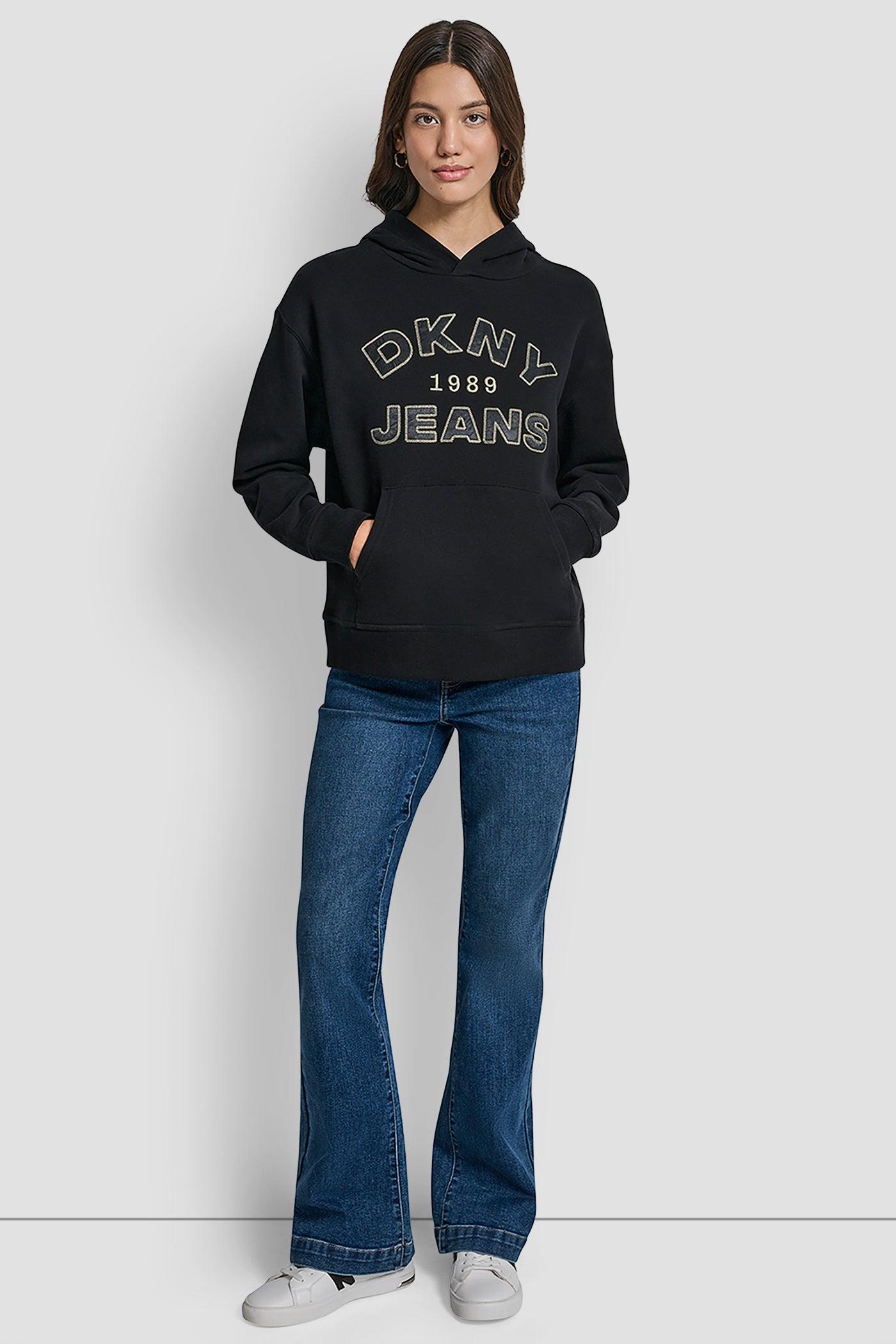 DKNY JEANS SATIN APPLIQUE CHAINSTITCH LOGO SWEATSHIRT