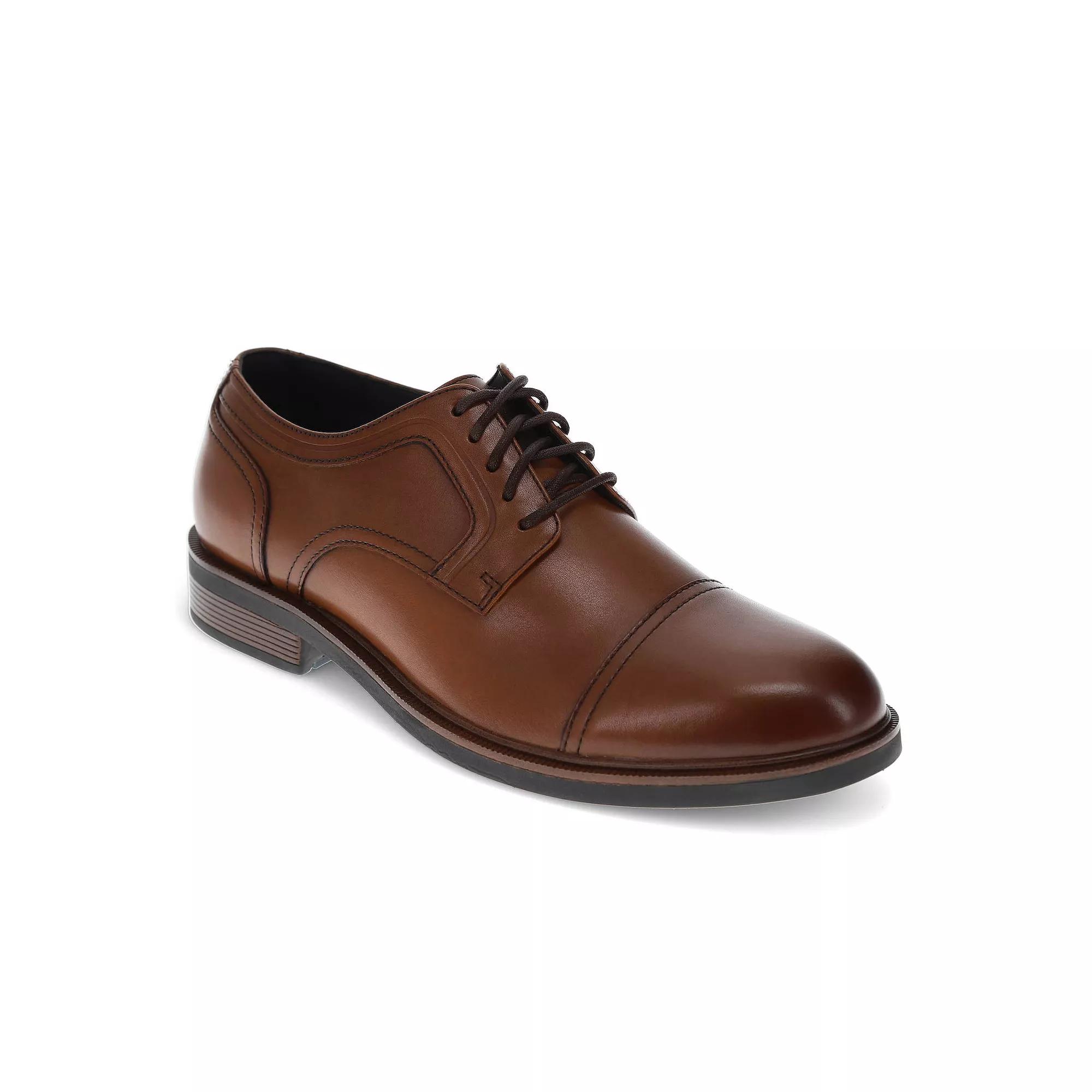 Step up your shoe game with these Dockers dress shoes that blend comfort and style like a perfect cup of coffee. With a supportive footbed, moisture-wicking linings, and a handsome leather finish, you'll feel like you're walking on clouds while turning heads in the office or at your next big event. Click on this MEN'S GUIDE to find the perfect fit and more! - https://www.kohls.com/feature/mens-apparel-guide.jsp. FEATURES: Long-lasting, superior comfort, Lightweight, flexible support, Enduring breathability, Reliable, next-level traction, Premium leather design. MATERIAL & CARE: Polished full grain leather upper, Polyester lining, EVA midsole and footbed, Rubber outsole, Spot clean. DETAILS: Cap toe, Lace-up closure, Removable insole, Treaded outsole, Platform height: 1", Imported. Size: 13 Med. Color: Butterscotch. Gender: male. Age Group: adult.