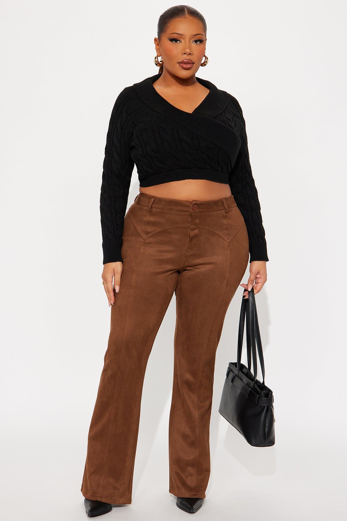 Available In Black, Charcoal, Chocolate And Ivory. Pullover Sweater Long Sleeve Surplice Cropped Ribbed Hem Self: 70% Polyester 30% Acrylic Imported California Proposition 65WARNING: Cancer and Reproductive Harm - www.P65Warnings.ca.gov.