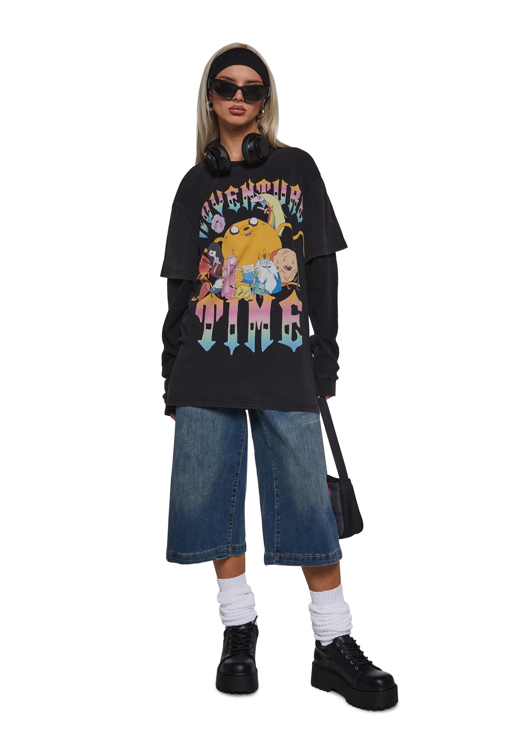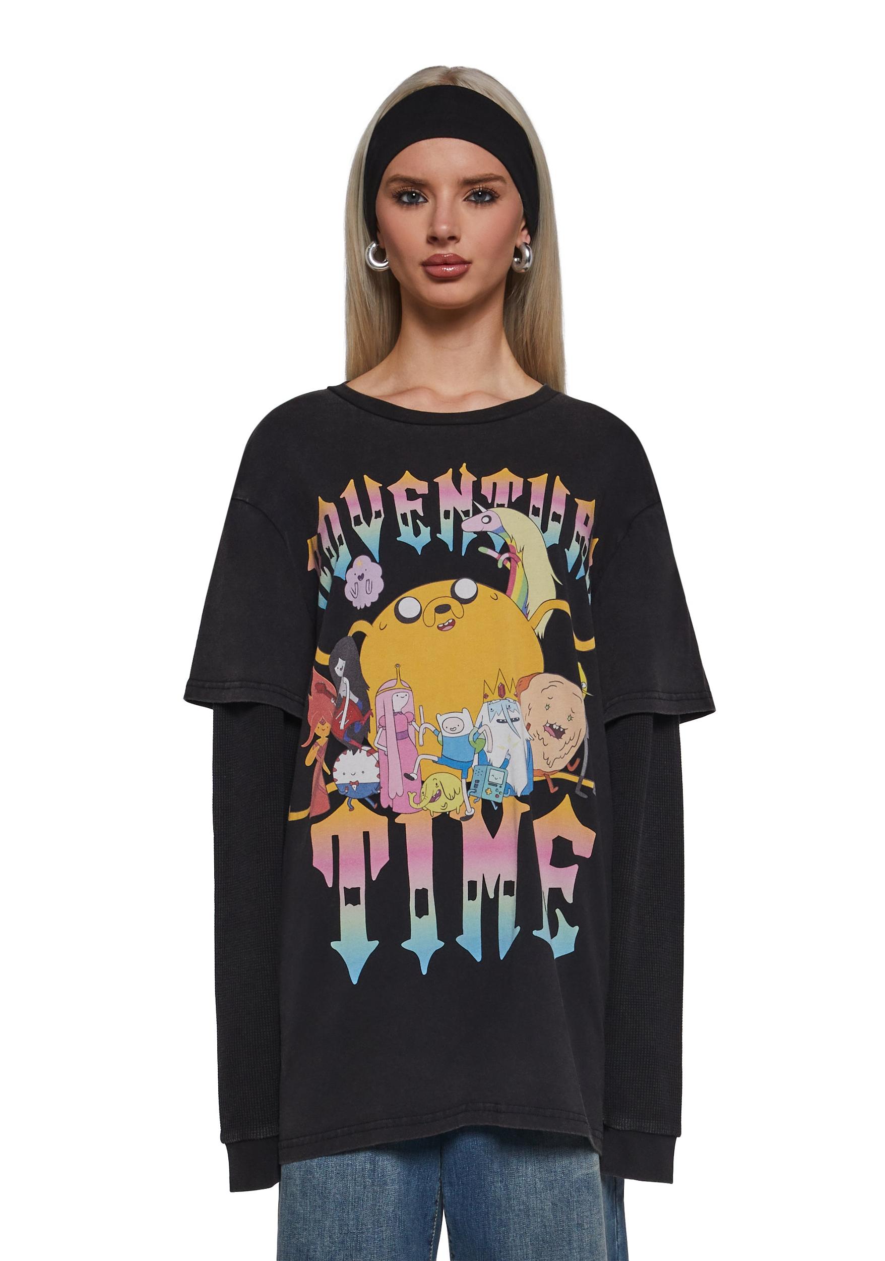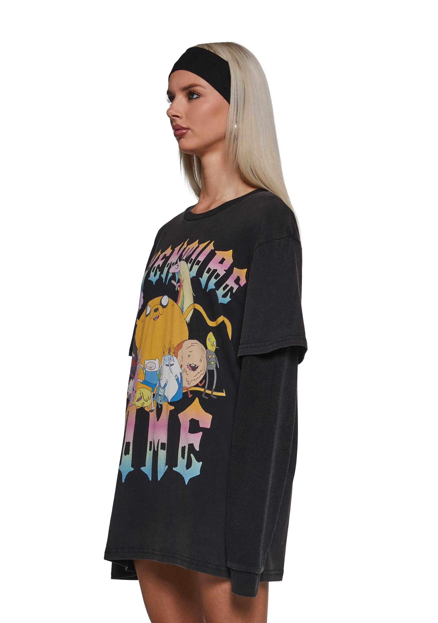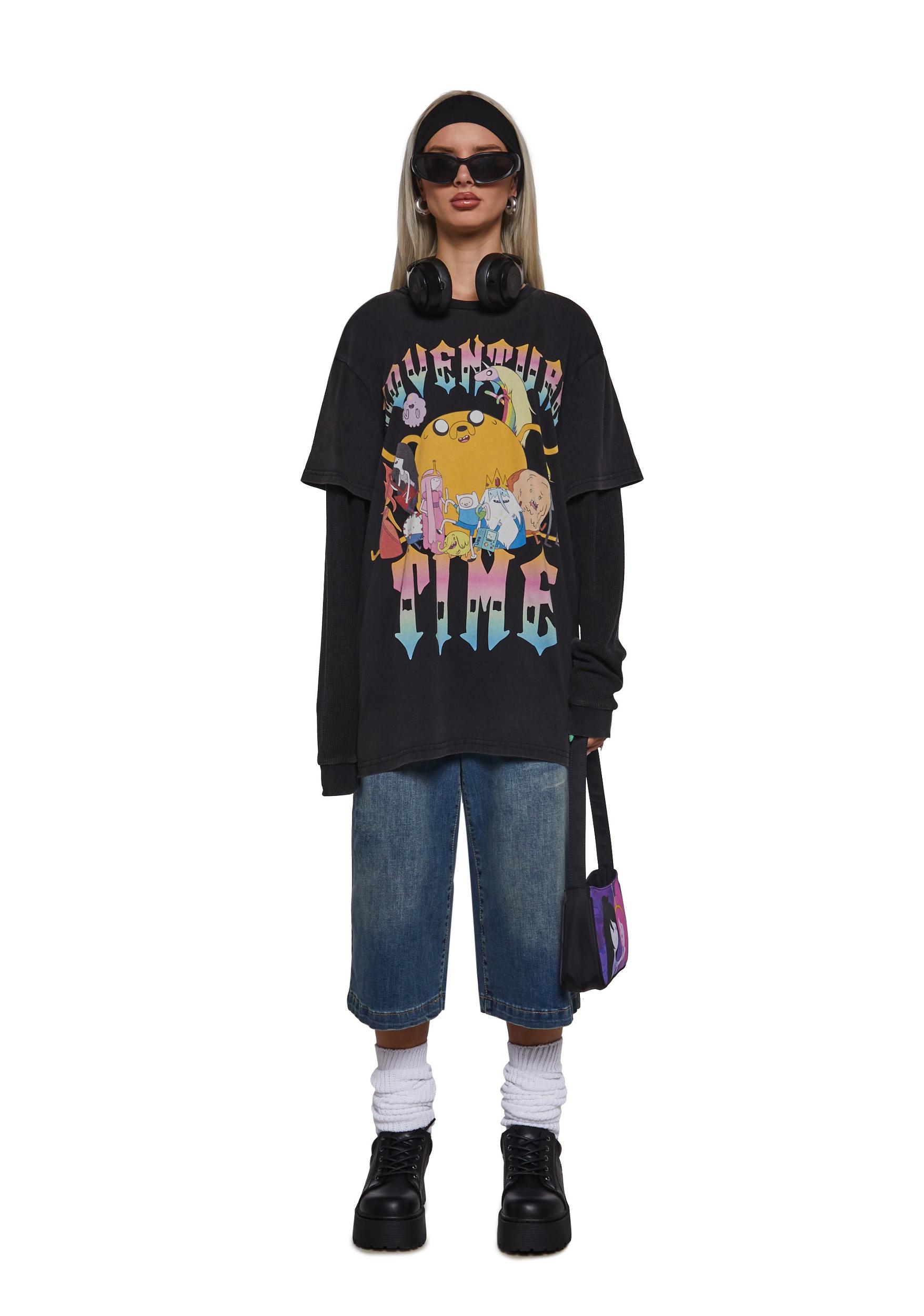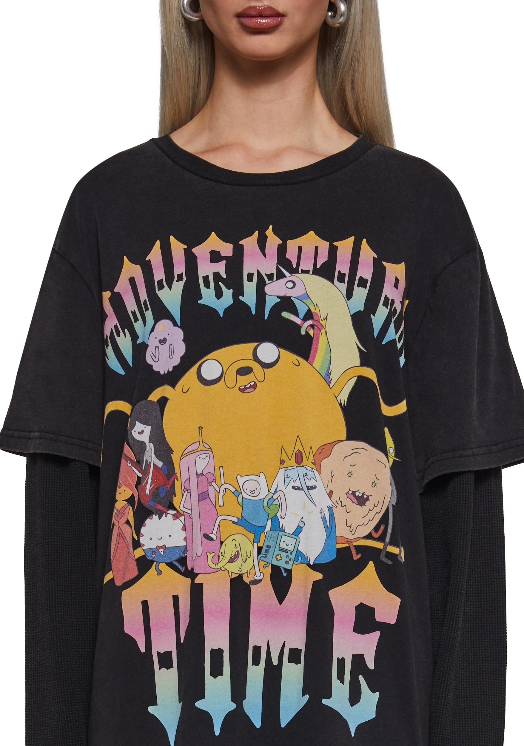 Dolls Kill x Adventure Time Graphic 2Fer Long Sleeve Tee - Black