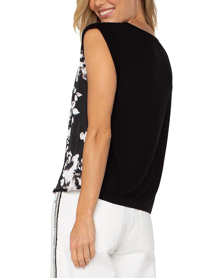 The Liverpool™ Los Angeles Sleeveless Woven To Knit Top is your new go-to for timeless style and everyday comfort. Featuring a classic fit and flattering boat neck, this sleeveless essential combines a refined woven front for a polished look with a knit back that ensures easy movement and all-day comfort. Its pull-on design makes it a breeze to wear, while its chic aesthetic effortlessly transitions from casual daytime outings to sophisticated evening affairs.