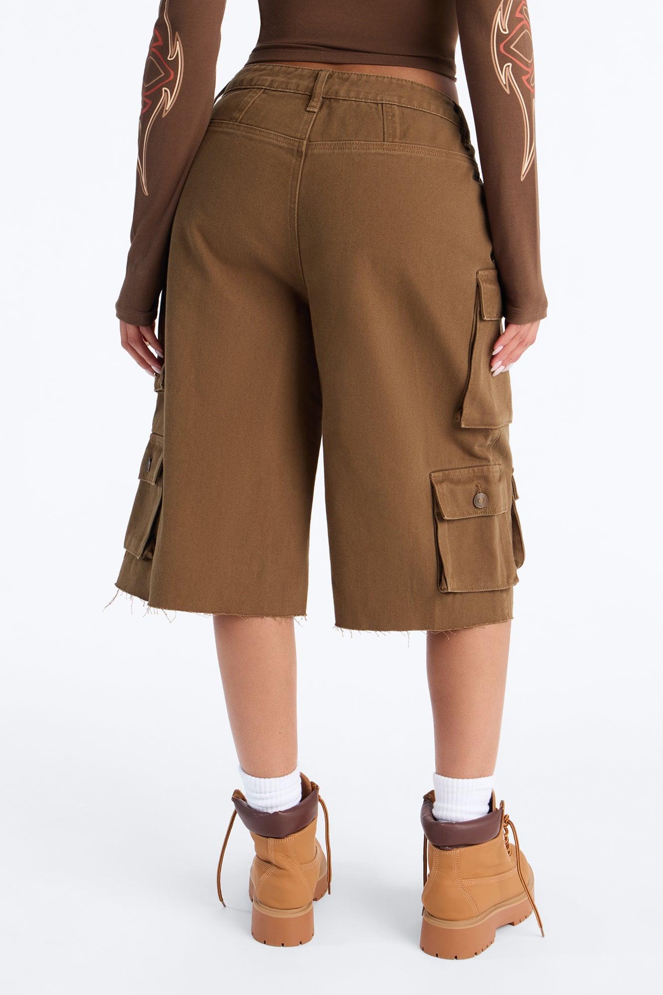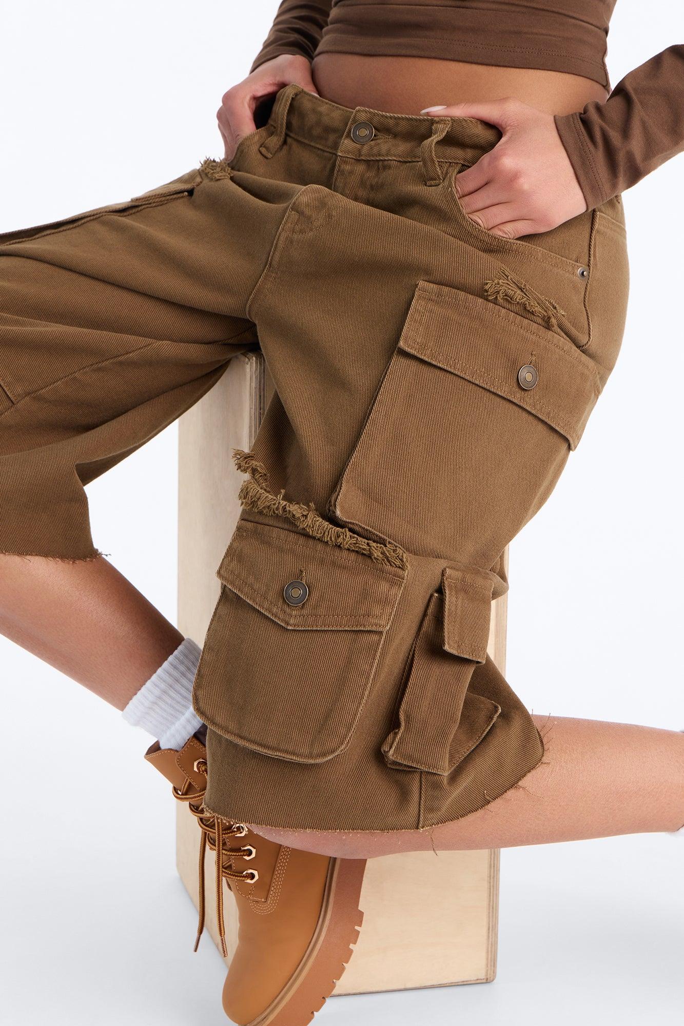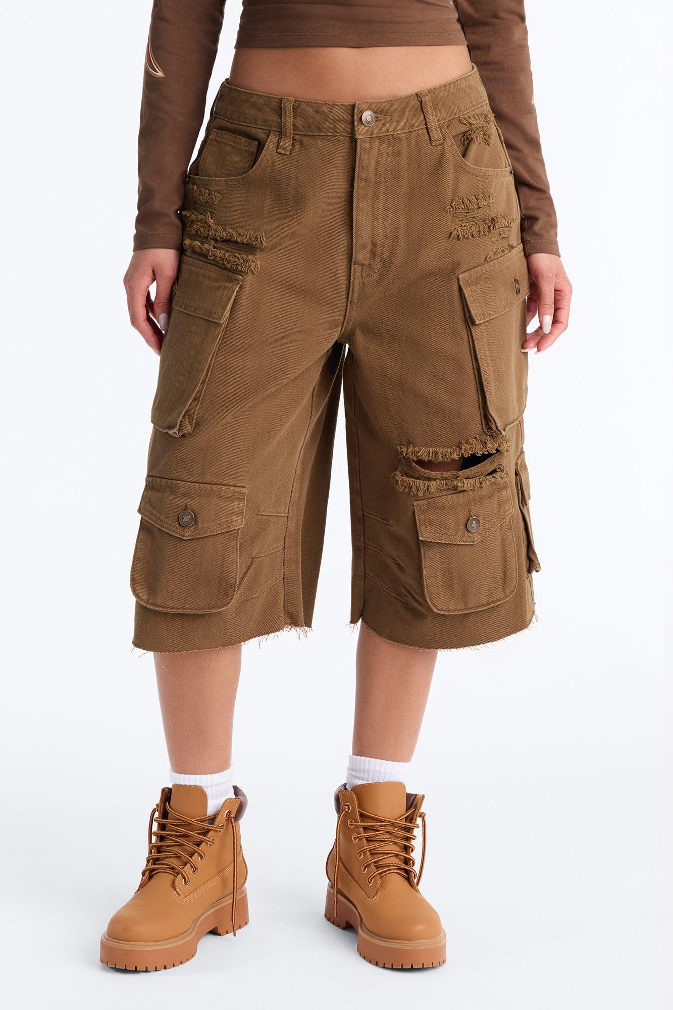 Available In Olive. Bermuda Short Mid Rise Button & Zip Closure Hand Pocket Cargo Pocket Oversized Fit Distressed Detail Non Stretch Disclaimer: Due To The Distressing Process, Each Garment Is Unique. Self: 100% Cotton Imported California Proposition 65WARNING: Cancer and Reproductive Harm - www.P65Warnings.ca.gov.