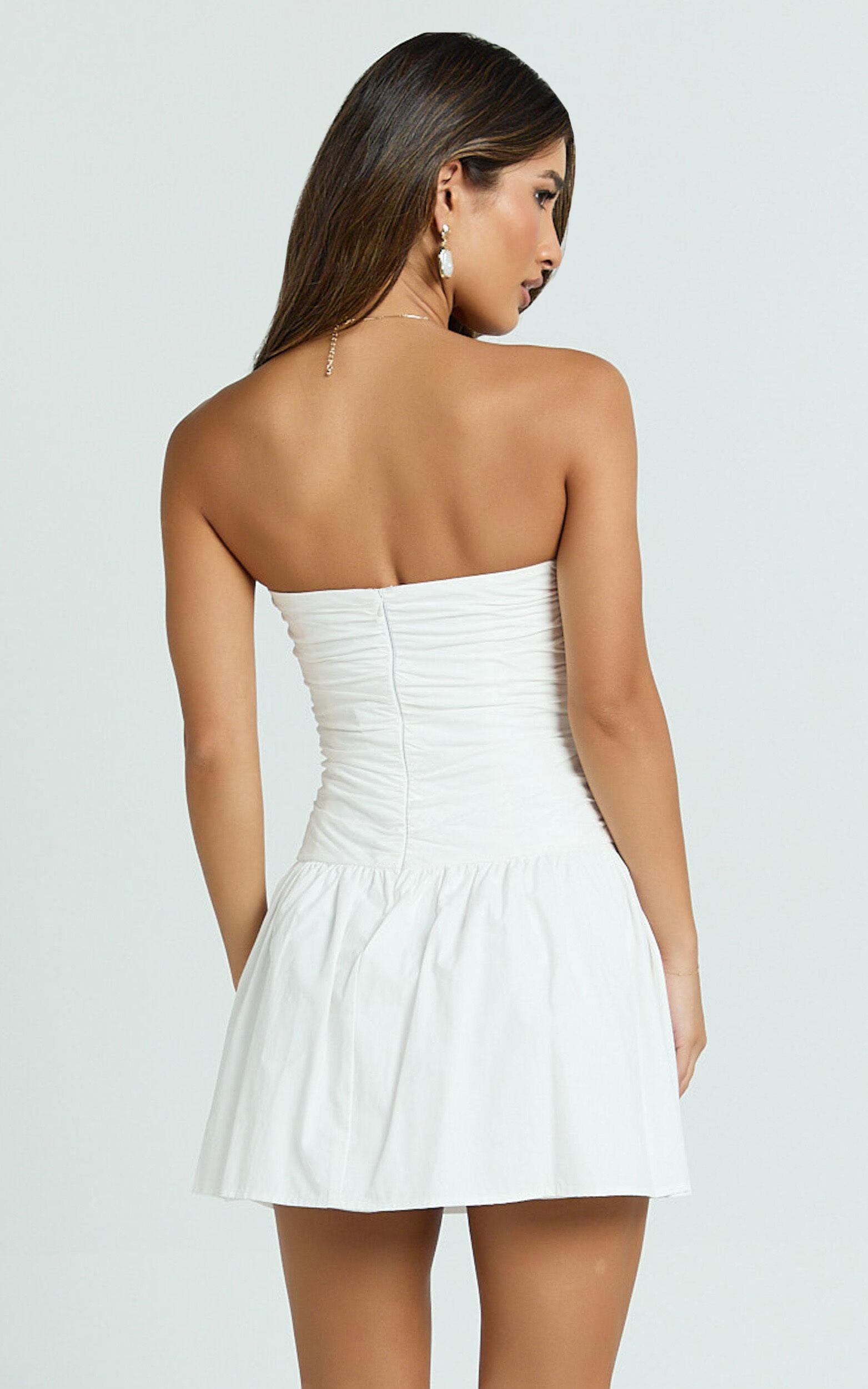 Featuring a chic strapless neckline and flattering drop-waist silhouette, this white beauty blends vintage-inspired charm with streetwear trends, creating the ultimate statement piece.Pair it easily with chunky white sneakers and bold, trendy jewelry to level up your style from casual brunches to dreamy date nights. Wherever you're headed, the Donatella Mini Dress will have you stepping out with flirty confidence and getting endless compliments!Product Details:Zips closureFit & Flare silhouetteGingham fabricStrapless necklineCasual wearMini lengthCotton material