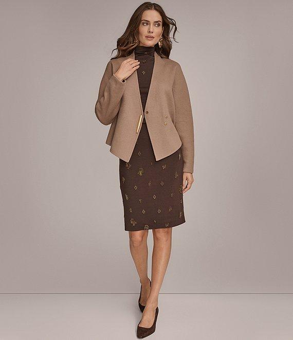 From Donna Karan, this top features: Faux wool jersey fabrication Beading Mock neckline Sleeveless Ruched shoulder detail Lined Pullover construction Approx. 22.5" length Polyester/elastane Hand wash Imported.