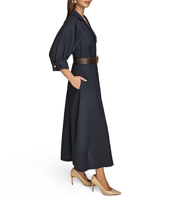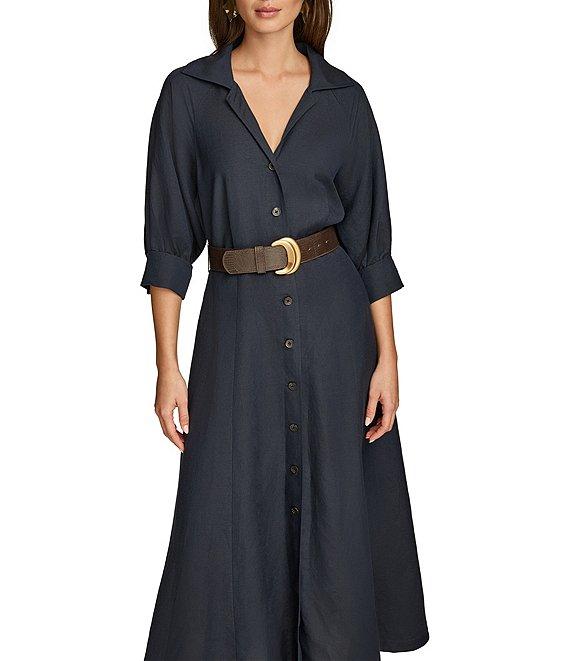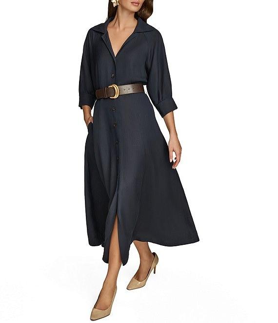 Donna Karan Button Front 3/4 Sleeve Belted Midi Shirt Dress