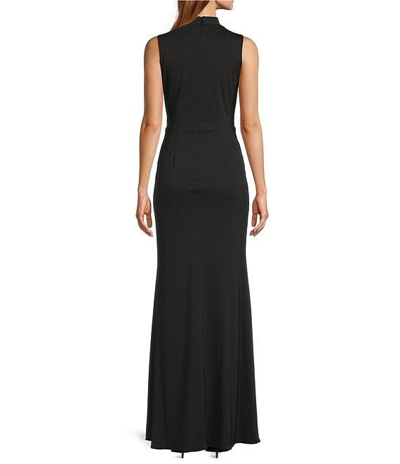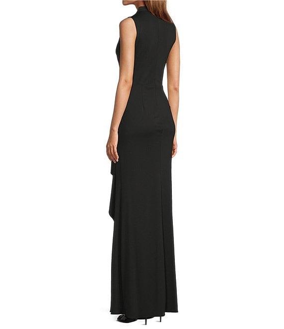 Donna Karan Filament Jersey Wrap V-Neck Sleeveless Long Sheath Gown