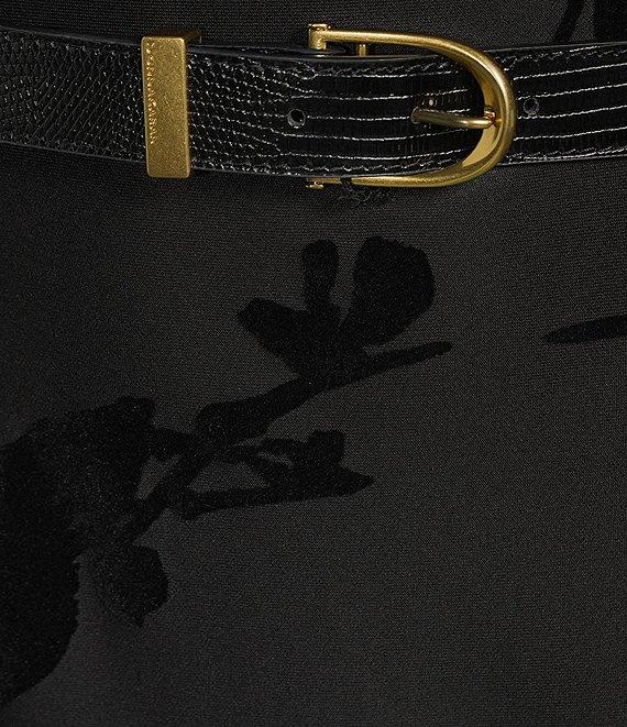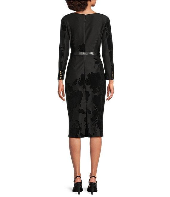 Donna Karan Floral Print Flocked Scuba Boat Neck 3/4 Sleeve Belted Midi Dress