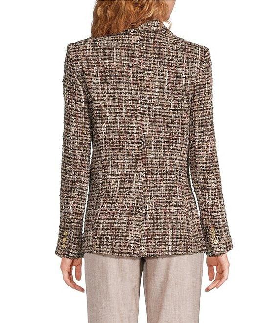 Donna Karan Tweed Notch Collard Long Sleeve One Button Jacket