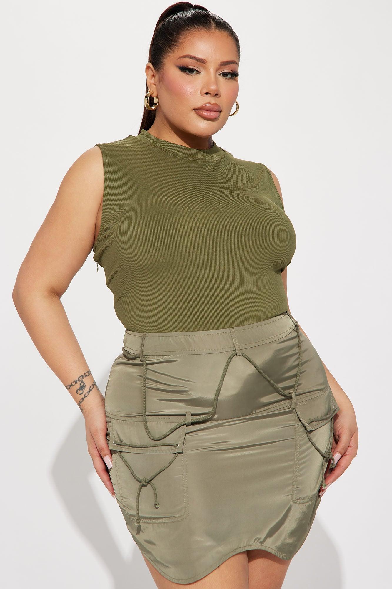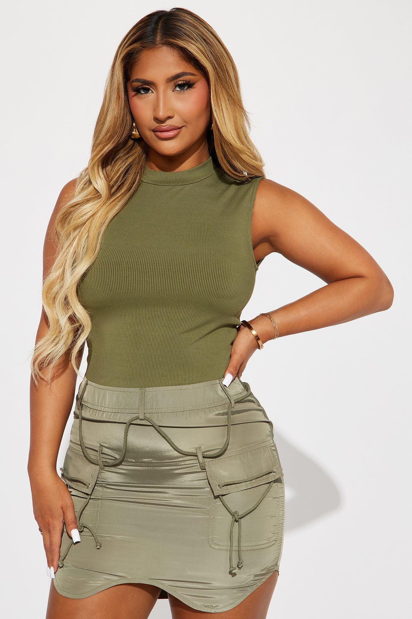 Available In Olive. Mini Dress Mock Neck Sleeveless Ribbed Top Windbreaker Skirt Pockets Rope Design Shell: 92% Polyester 8% Spandex Contrast: 100% Polyester Imported California Proposition 65 WARNING: Cancer and Reproductive Harm - www.P65Warnings.ca.gov.