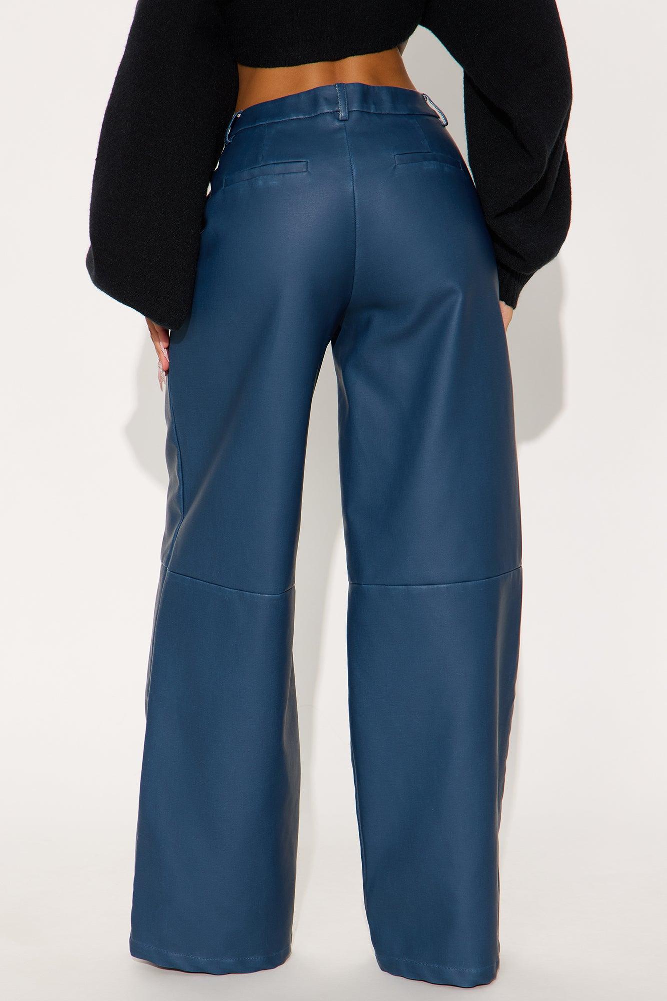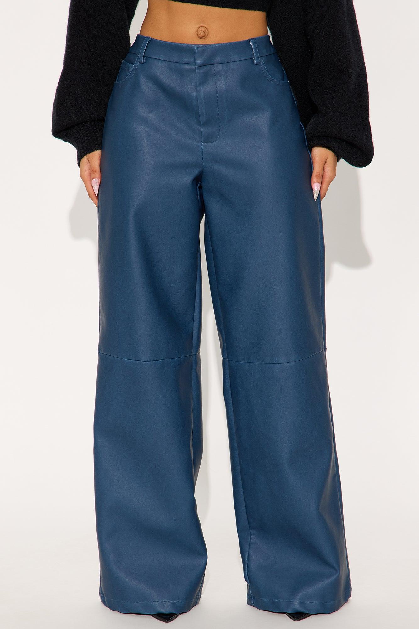 Double Down Faux Leather Wide Leg Pant 33″ - Blue Female