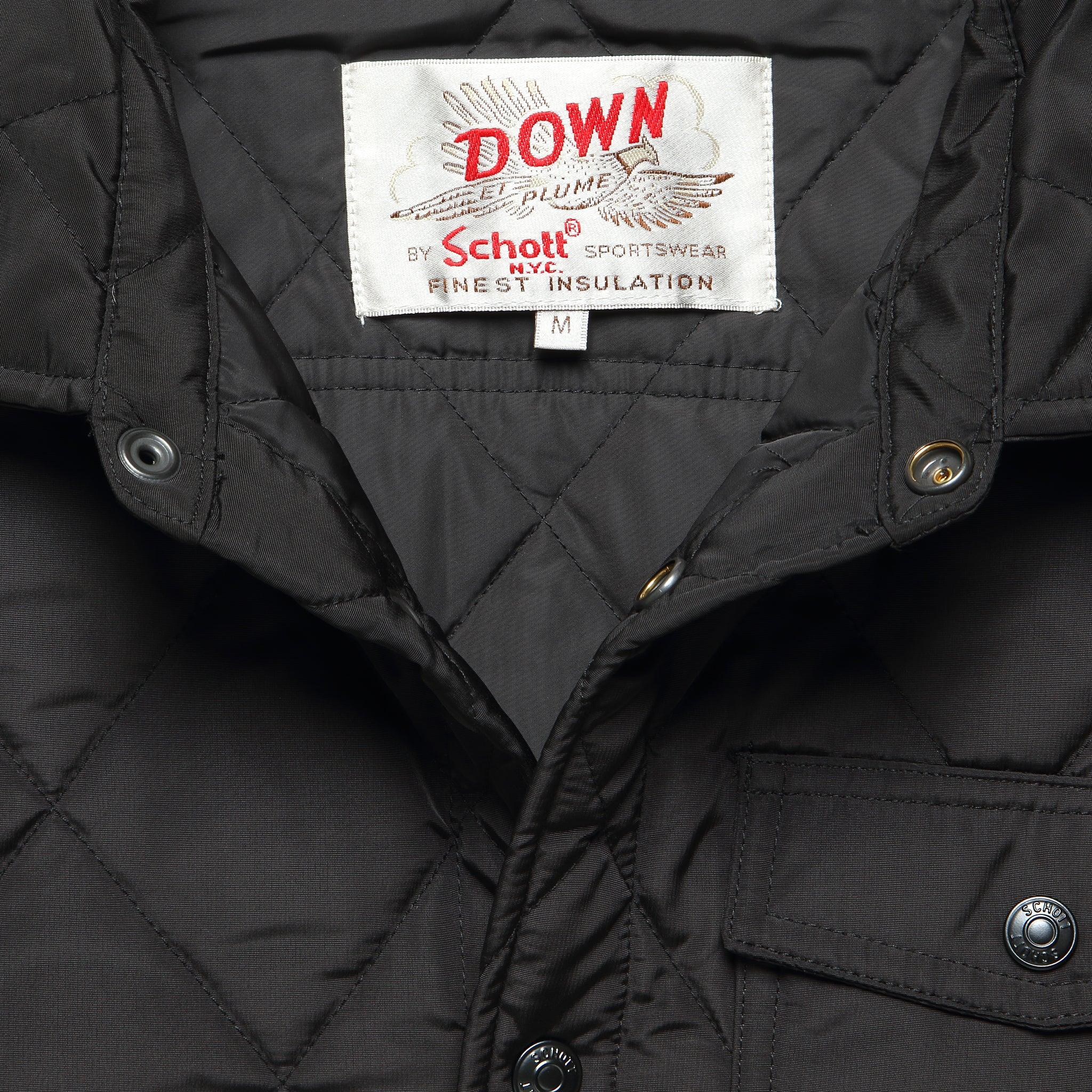 The Down-Filled Quilted Shirt Jacket from Schott NYC is made with a durable, water-resistant nylon that features a diamond, down-filled construction to provide extra warmth through the chilly days ahead. It has a loose, relaxed fit that’s great for layering and comes with a pair of waist patch pockets, a single chest pocket, and a snap placket to help trap in warmth when you need it. Down-filled shirt jacket Diamond-quilted construction Water-resistant polyester shell Two waist patch pockets Single snapped chest pocket Snap placket and cuffs Relaxed fit that runs sure to size We recommend taking your normal size or taking one size down for a slimmer fit Materials: Shell: 100% Polyester | Lining: 100% polyester Fill: 80% duck down, 20% duck feather The following measurements are for size Medium: Chest: 46" | Shoulder: 18 ½“ | Sleeve: 35 | Length: 30 ½”