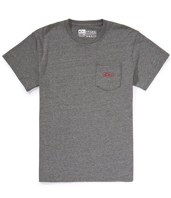 From Drake Clothing Co., this t-shirt features:Crew necklineShort sleevesLogo on left chest pocketGraphic on backPullover constructionCotton/polyesterMachine wash/tumble dryImported.