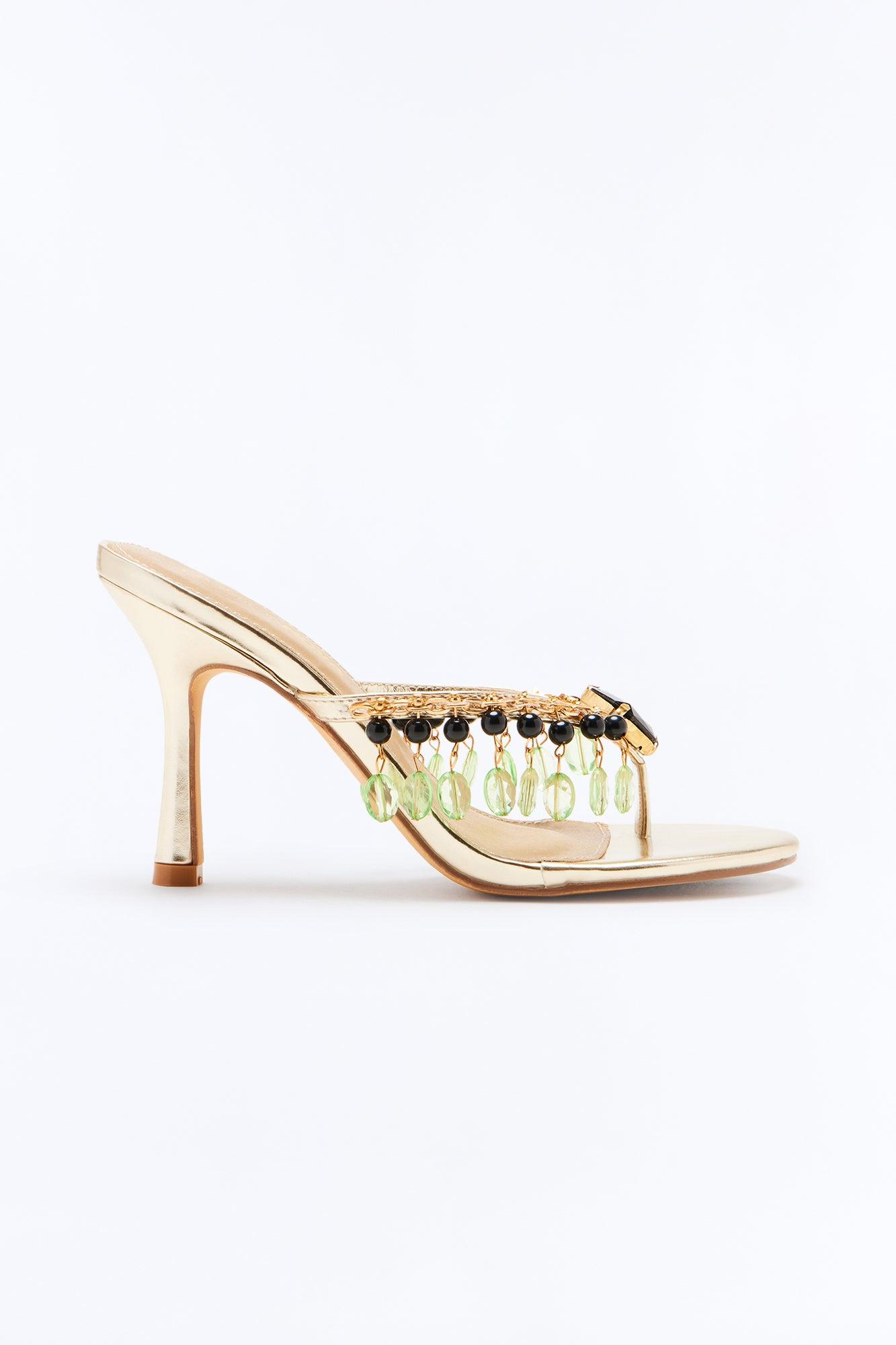 Dramatic Jewel Metallic Thong Heels - Gold Female