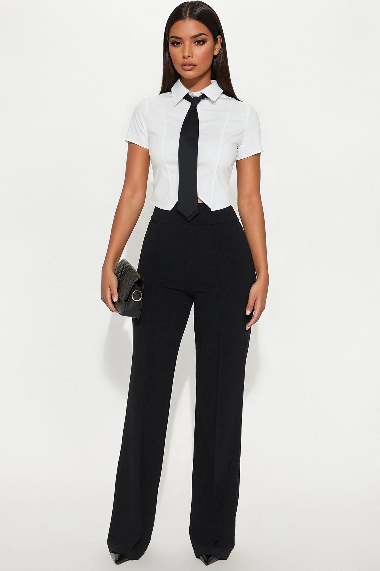Dream Big Button Front Tie Shirt - White/Black Female