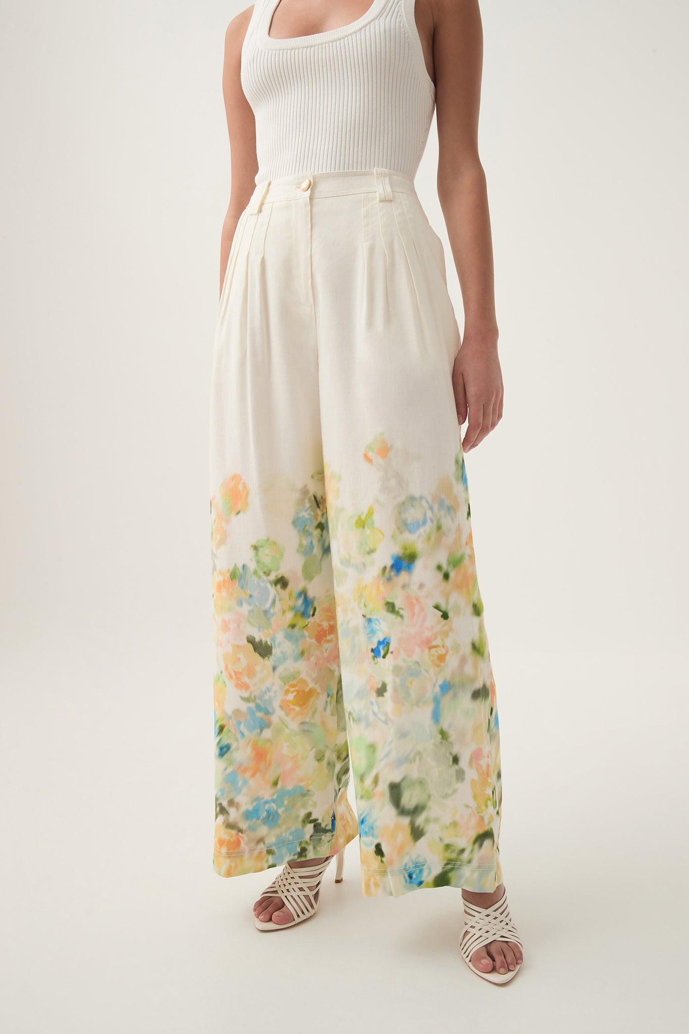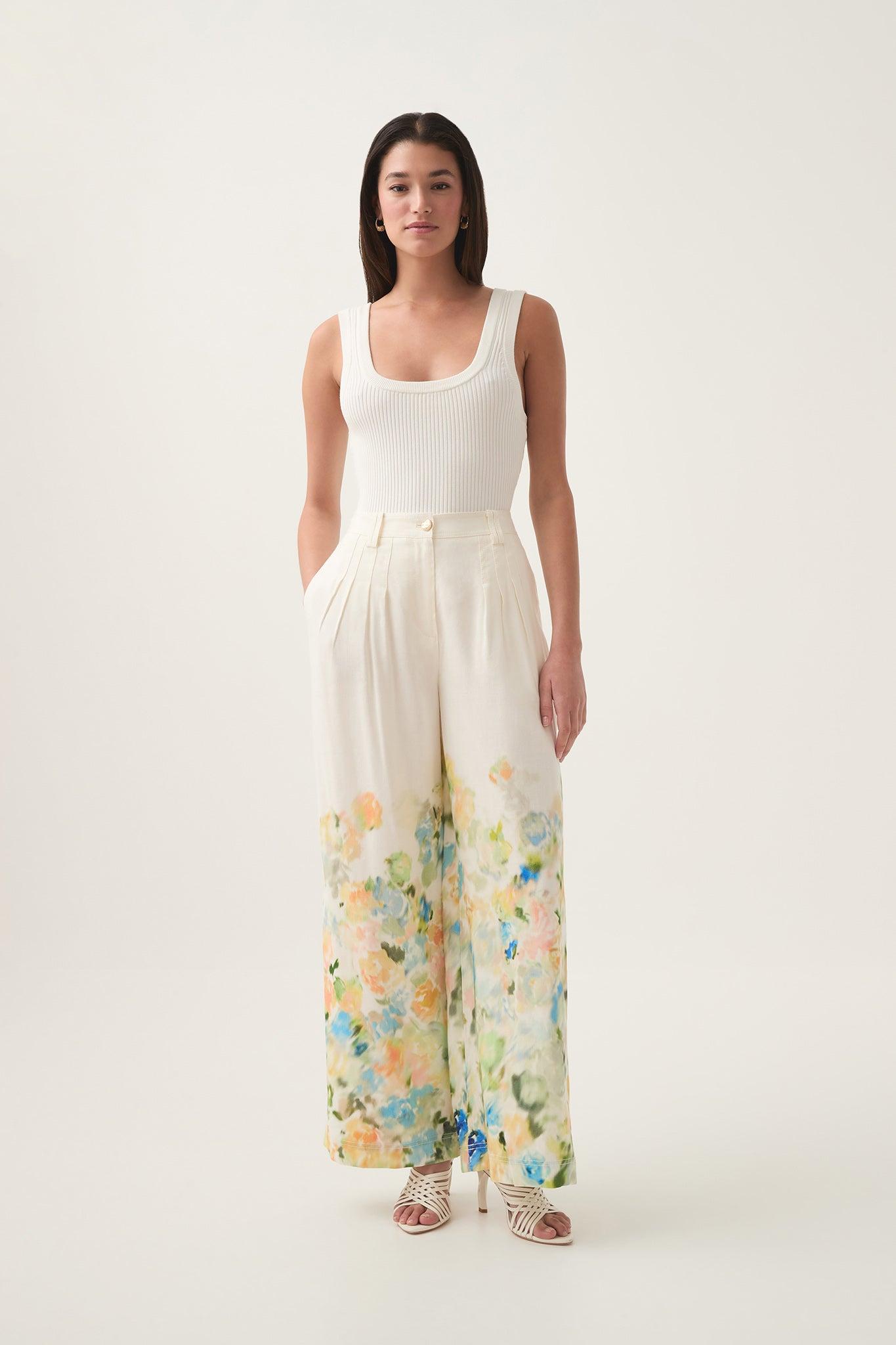 PRODUCT DETAILS Women's wide-leg pant Front zip fly with metal feature button Twin belt loops Stretch back waistband Tuck details Side pockets 55% Linen, 45% Rayon Dry Clean Only P Shop All Pants SIZE AND FIT Model wears a size AU 8/S Height: 175cm/ 5’9 Bust: 81cm Waist: 60cm Hips: 89cm