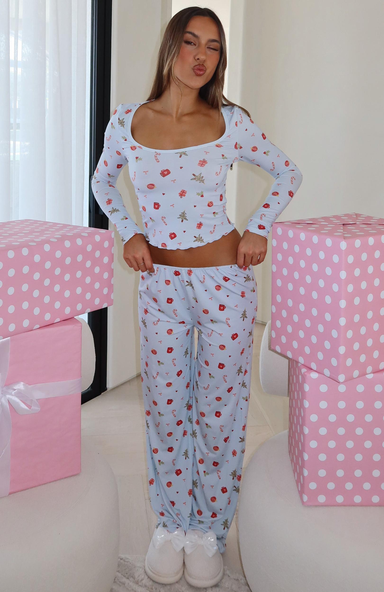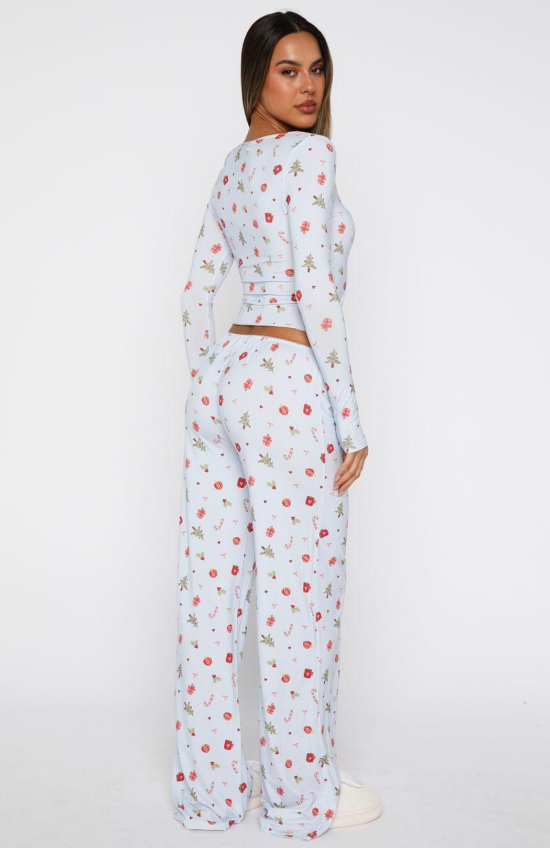 IT'S A WHITE FOX CHRISTMAS... Nighttime routines made cute in the Dreamy Pyjama Pants Sugar in Jingle Joy! They feature a thin elasticated waistband trimmed with scalloped lace, straight‑leg silhouette, ultra‑soft high‑stretch fabric, and a delicate xmas inspired print for a sweet touch. Pair with the matching Jingle Joy Pyjama Top and slippers to complete the look. Mik is 171cm & wears a S