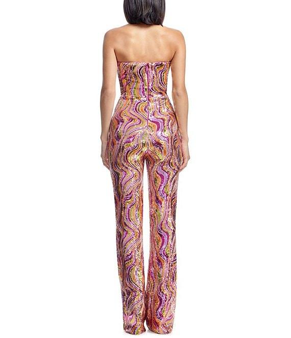 Dress the Population Andy Sequin Swirl Print Strapless Neck Sleeveless Straight Leg Jumpsuit
