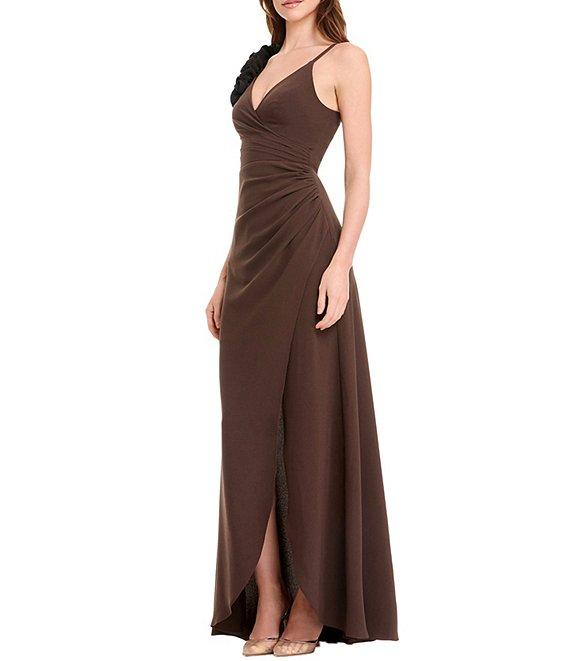 Dress the Population Camelia A-Line V-Neck Rouched Crepe Dress