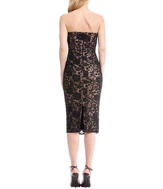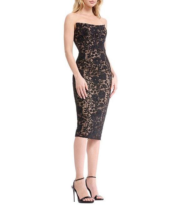 Dress the Population Cosette Corset Lace Strapless Bodycon Midi Dress