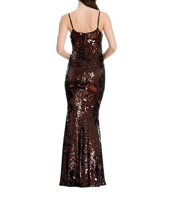From Dress the Population, this dress features: Sequin fabrication Mermaid gown silhouette Scoop neckline Sleeveless Lined Zip back closure Approx. 60.5" length Polyester/Spandex Dry clean Imported.