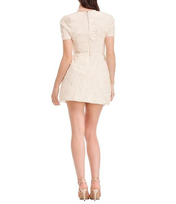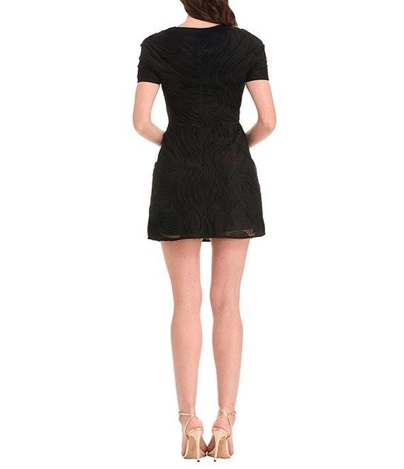 Dress the Population Short Sleeve Tulle Sequin Beaded Neckline A-Line Mini Dress