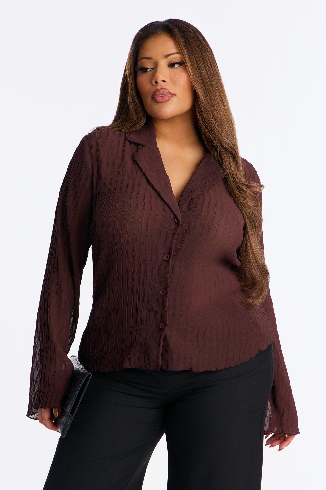 Dressed In Moods Sheer Chiffon Shirt - Chocolate Female