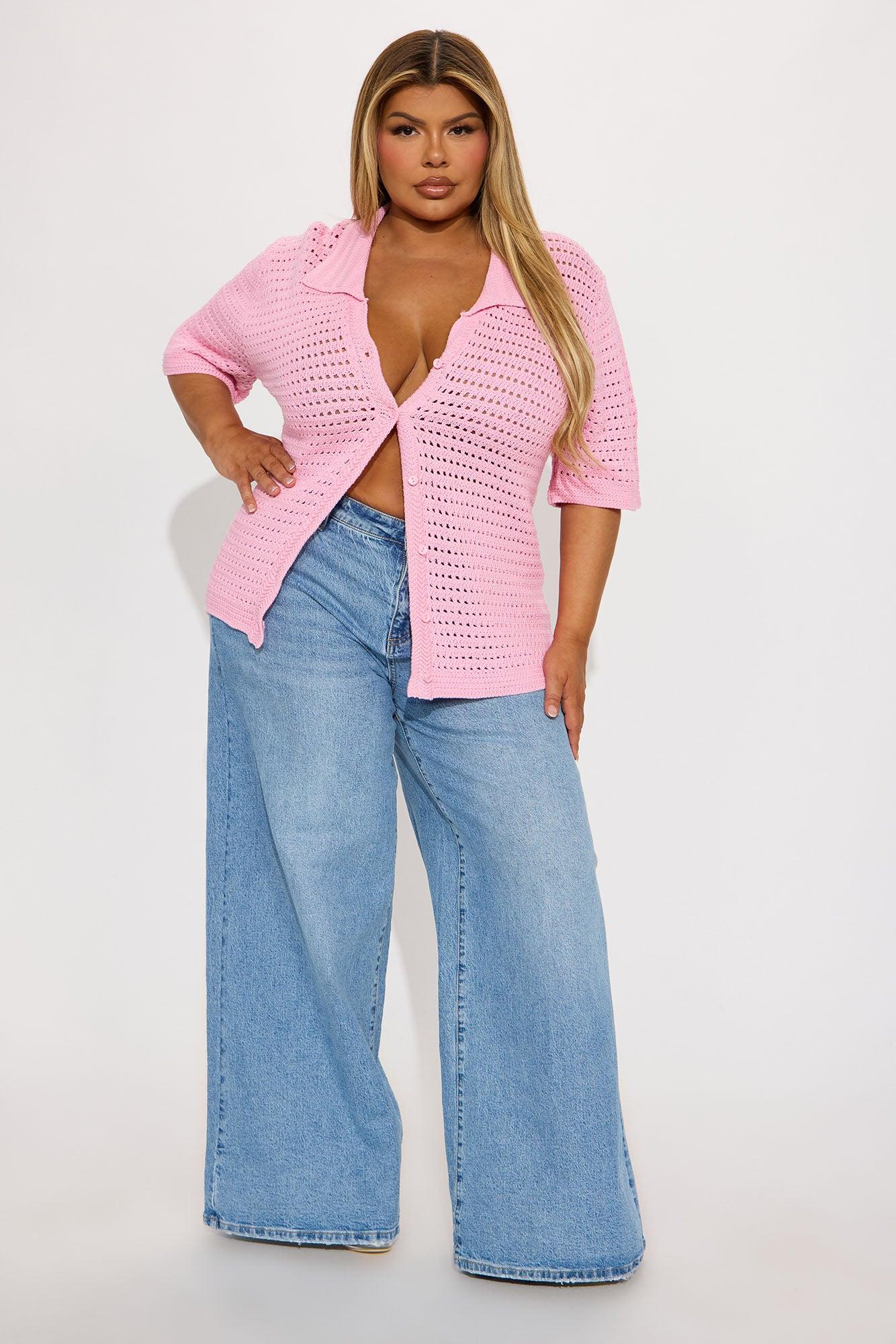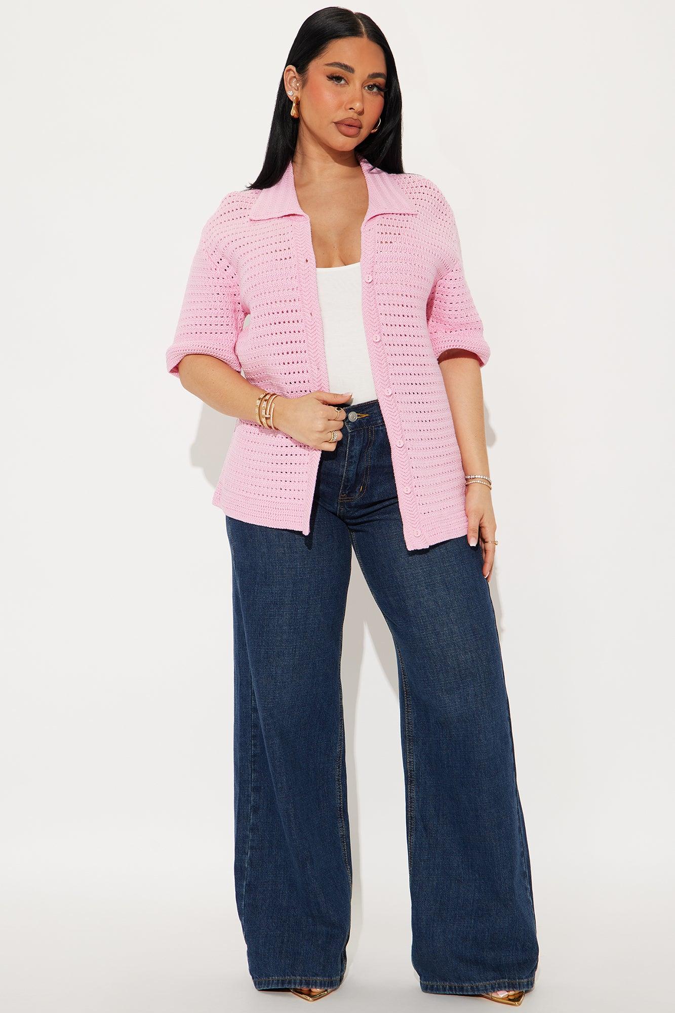 Drinks In Hand Crochet Shirt - Pink