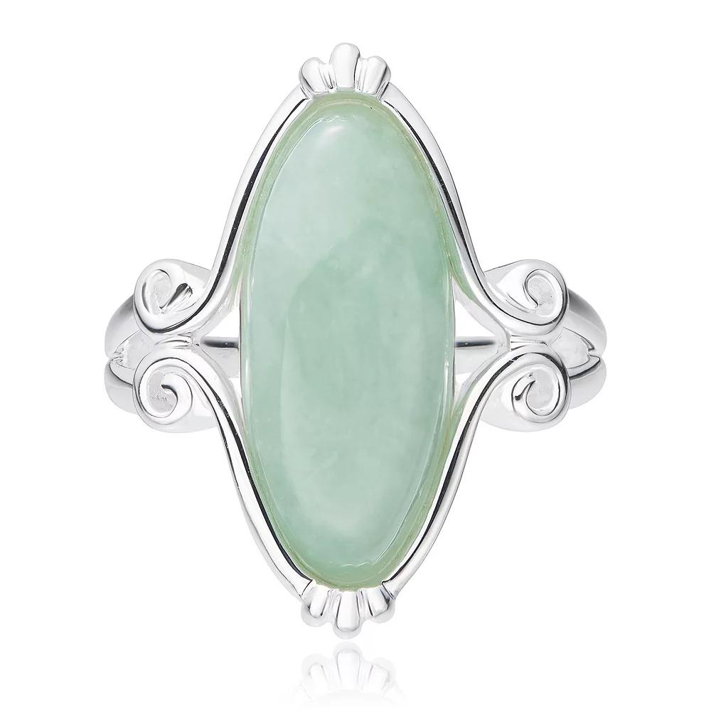 Finish off your look with this Dynasty Jade sterling silver jade ring. Click on this JEWELRY & WATCHES GUIDE to learn about fit, styles, materials and more! Finish off your look with this Dynasty Jade sterling silver jade ring. Click on this JEWELRY & WATCHES GUIDE to learn about fit, styles, materials and more! FEATURES Band width: 22.86 mm Shank style: split, vintage Band fit: split shank Nickel safe Metal: sterling silver Plating: sterling silver Finish: polished Packaging: boxedSTONE DETAILS Stone type: jadeite jade Total weight: 4 1/3 ct. Center stone weight: 4 1/3 ct. Center stone size: 18 mm x 8 mm Shape: cabochon Setting: glue/epoxy Gemstones may have been treated to enhance their appearance. Special care may be required. Please visit our Gemstone Treatment & Special Care Guide for more information. Size: 6. Color: Green. Gender: female. Age Group: adult.