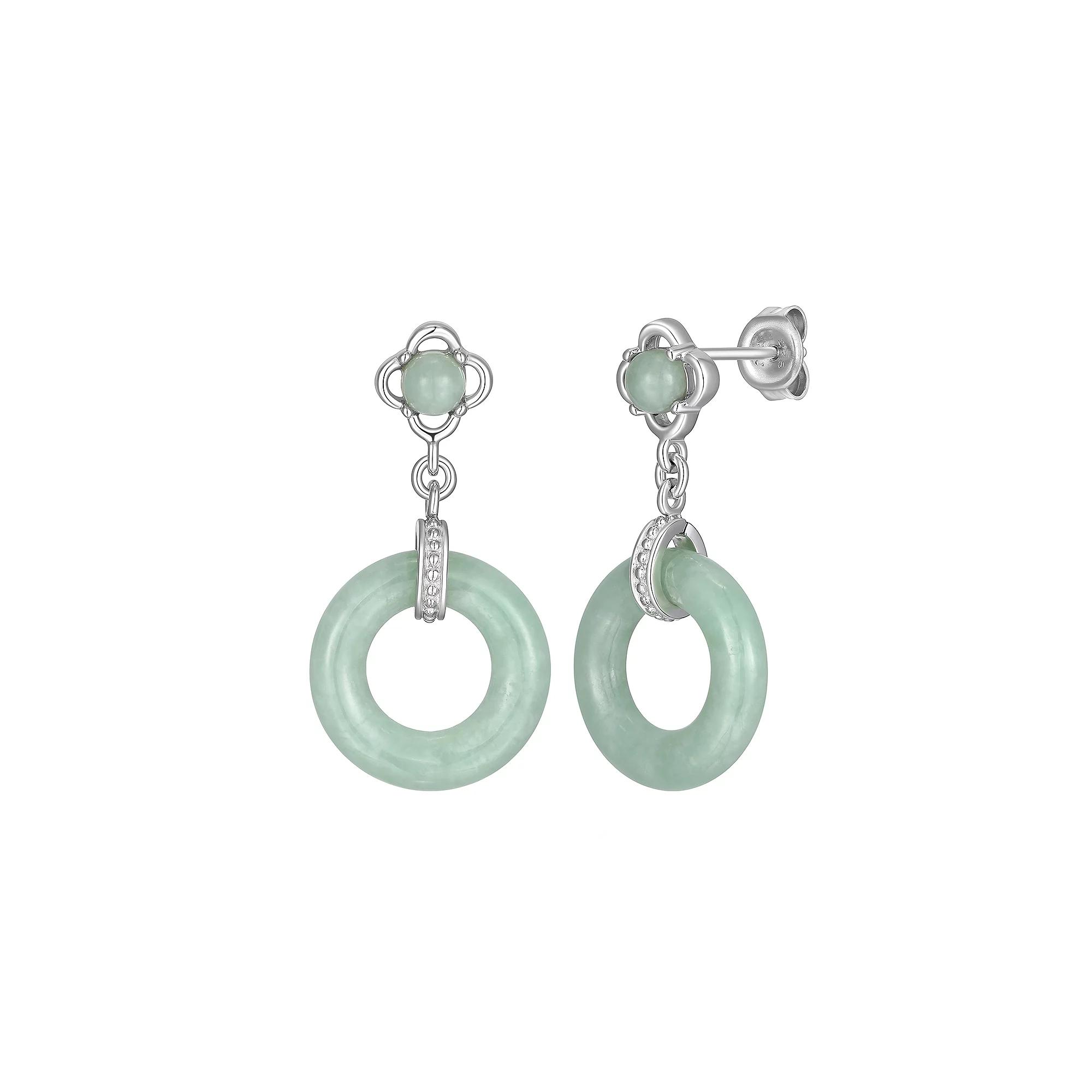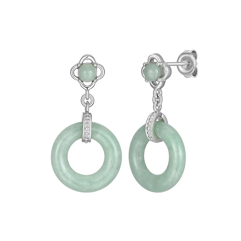 Add an elegant finishing touch to any ensemble with these Dynasty Jade sterling silver open circle jade drop earrings. Click on this JEWELRY & WATCHES GUIDE to learn about fit, styles, materials and more! - https://www.kohls.com/feature/jewelry-guide.jsp. FEATURES: Length: 28.74 mm x 14.97 mm, Backings: post, Nickel safe, Metal: sterling silver, Plating: rhodium, Finish: polished, Packaging: boxed. STONE DETAILS: Stone type: jadeite jade, Total weight: 8 9/10 ct., Center stone size: 15 mm x 7.5 mm, Shape: cabochon, round, Setting: glue/epoxy. Gemstones may have been treated to enhance their appearance. Special care may be required. Please visit our. Gemstone Treatment & Special Care Guide. - https://www.kohls.com/sale-event/gemstone-care-product-guide.shtml for more information. Size: One Size. Gender: female. Age Group: adult.