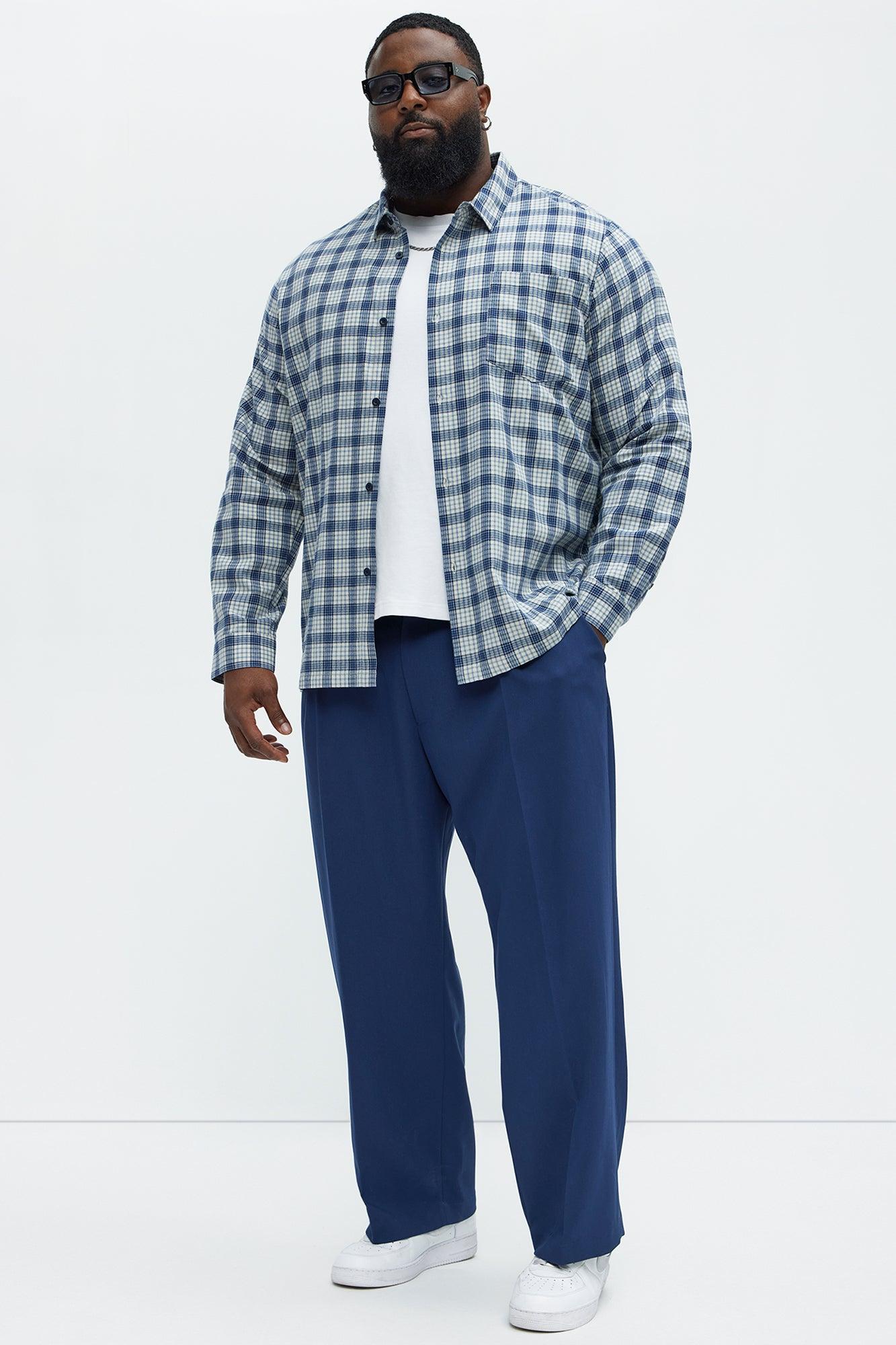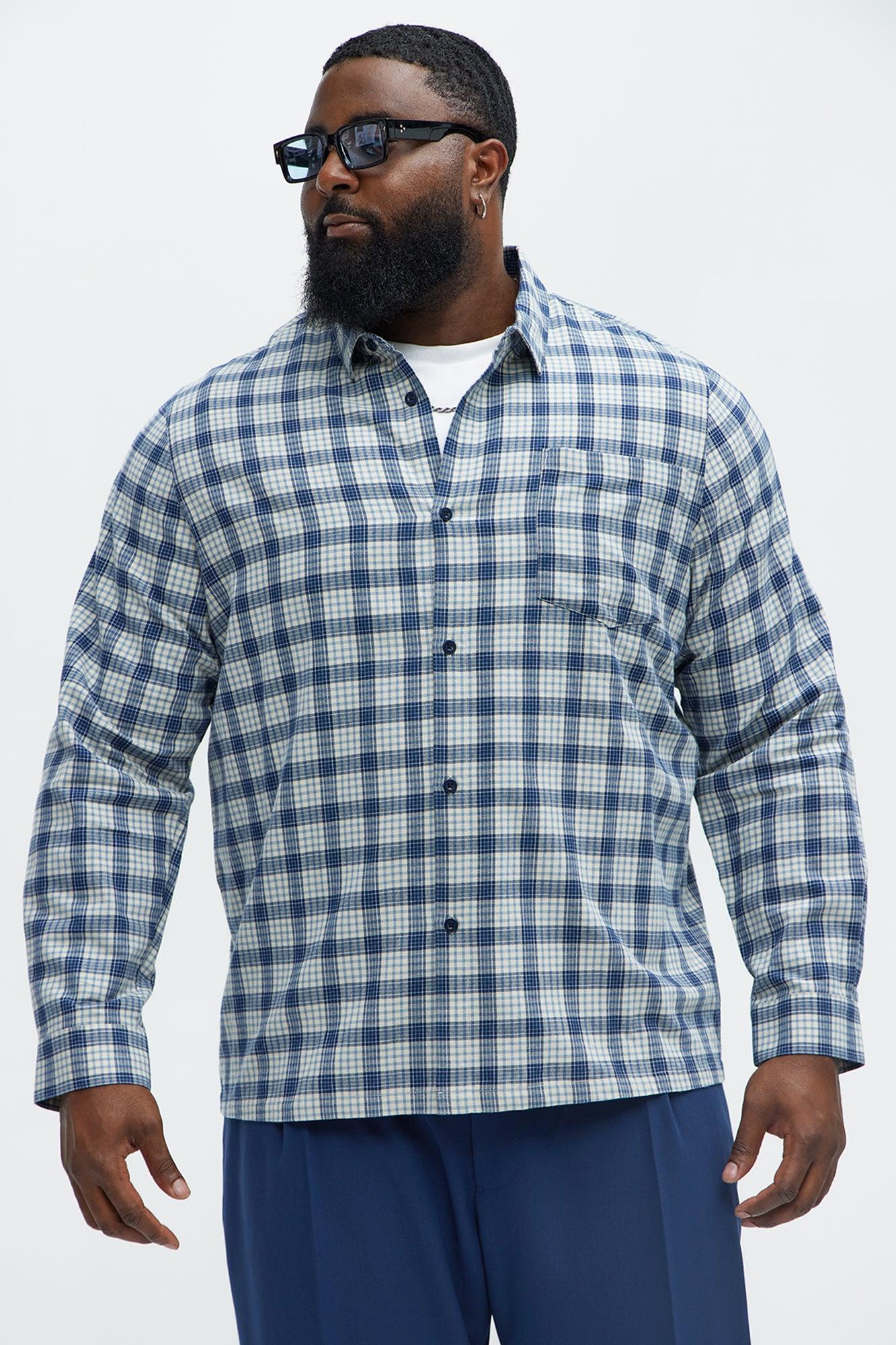 E-Z Plaid Long Sleeve Button Up - Blue/combo