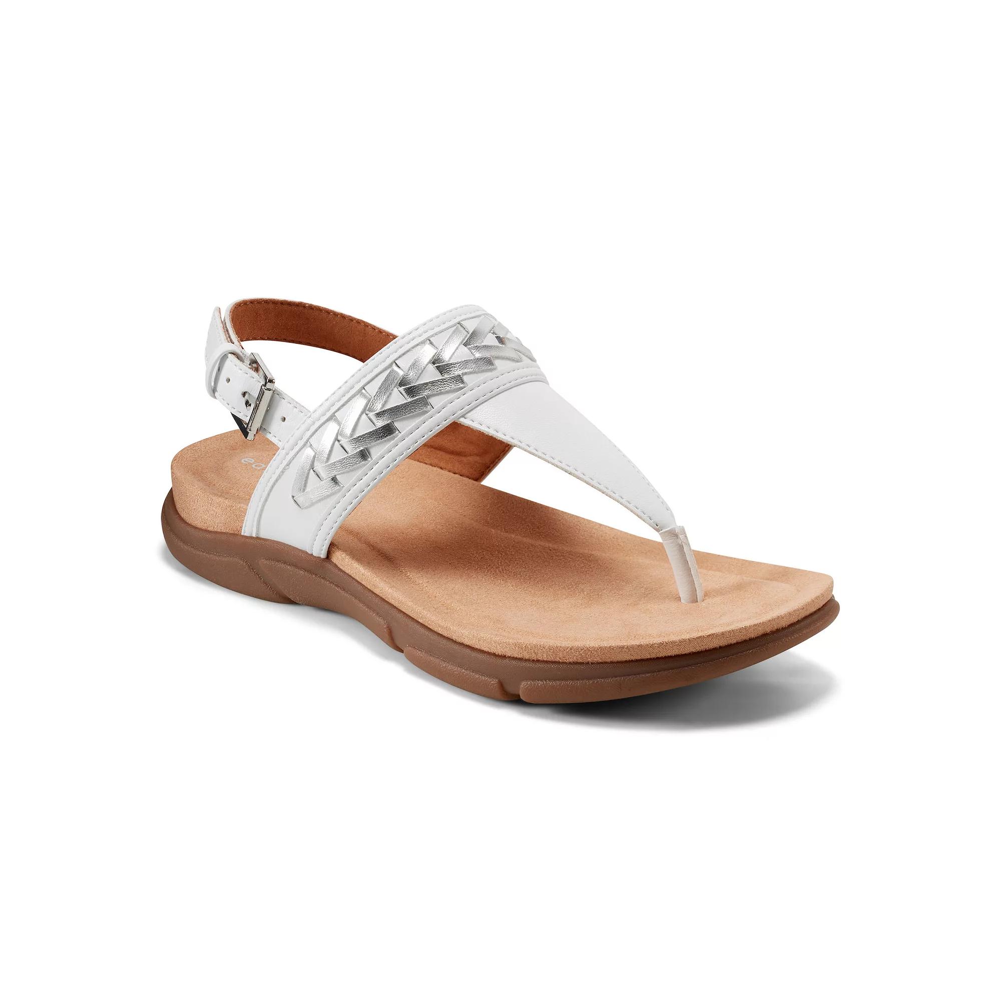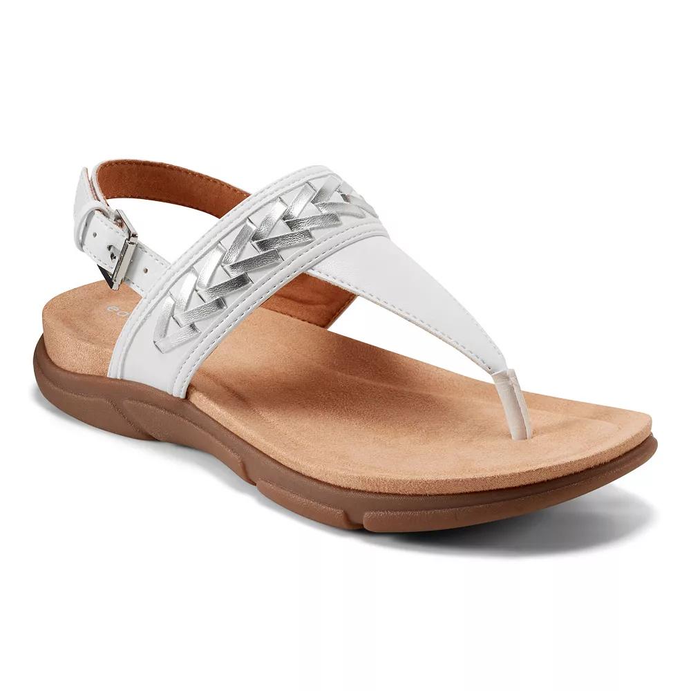 Step into style with these Easy Spirit Monte women's slingback thong sandals. Click this FOOTWEAR GUIDE to find the perfect fit and more! - https://www.kohls.com/feature/shoesizeguide.jsp. FEATURES: Flexible outsole, Lightweight design. DETAILS: Polyester, polyurethane, synthetic upper, Polyester, polyurethane lining, Synthetic midsole, TR outsole, Open toe, Buckle closure, Foam footbed, Flex groove outsole, 0.98-in. heel, Spot clean, Imported. Size: 8.5. Color: White Silver. Gender: female. Age Group: adult.
