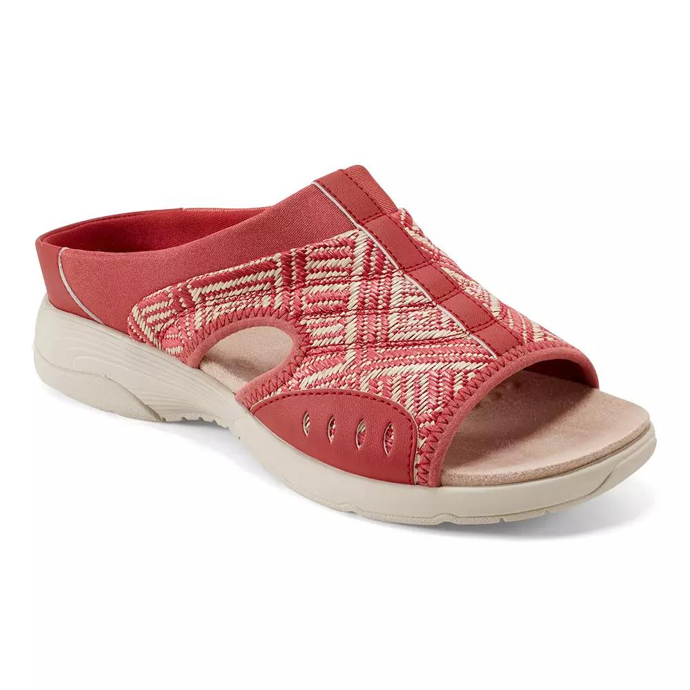 Comfort meets style with these Easy Spirit Traciee slide sandals. Click this FOOTWEAR GUIDE to find the perfect fit and more! SANDAL FEATURES Cushioning from heel-to-toe brings extraordinary comfort Fashionable side-cutouts Lightweight, flexible design EVA molded outsole for superior tractionSANDAL CONSTRUCTION Synthetic, lycra, microfiber, faux leather, mesh, textile upper Polyester, fabric lining EVA midsole and outsoleSANDAL DETAILS Open toe Slip-on EVA footbed Size: 8.5. Color: Red Cream Raffia Team. Gender: female. Age Group: adult.