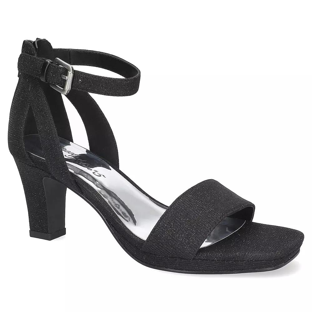 These shoes were made for strutting your stuff! Show off your unique style with these women's sandals from Easy Street. Click this FOOTWEAR GUIDE to find the perfect fit and more! - https://www.kohls.com/feature/shoesizeguide.jsp. FEATURES: Featuring a fresh ankle strap with buckle detailing and a plush pillow foam footbed to provide all-day comfort. DETAILS: Synthetic upper, Fabric lining, Rubber outsole, Open toe, Zipper closure, Foam footbed, 2.25-in. heel height, 0.25-in. heel height, Spot clean, Imported. Size: 6.5 XW. Color: Black Glitter. Gender: female. Age Group: adult.